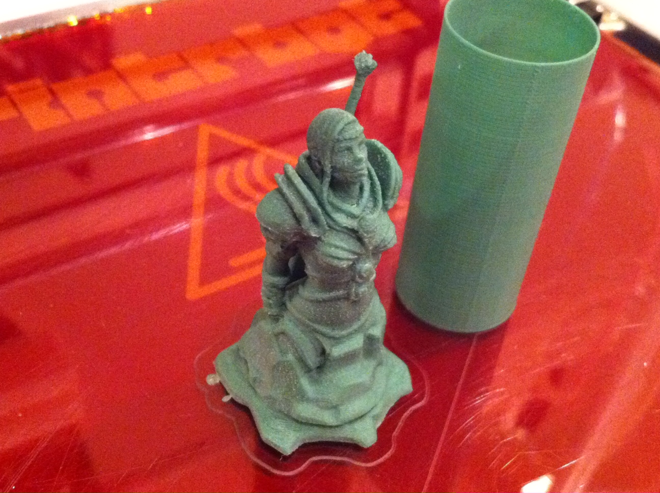 0.20 mm http://www.jerrill.com nozzle on a Printrbot PLUS, 0.10 mm layer height, 50% of STL height for a model height of 50 mm, print time 3:14, using KISSlicer v1.1.0.7 Mar 11 2013. Watch out B9Creator! I’m coming after you! She’ll get an acetone steam bath tomorrow and I’ll post pictures.
