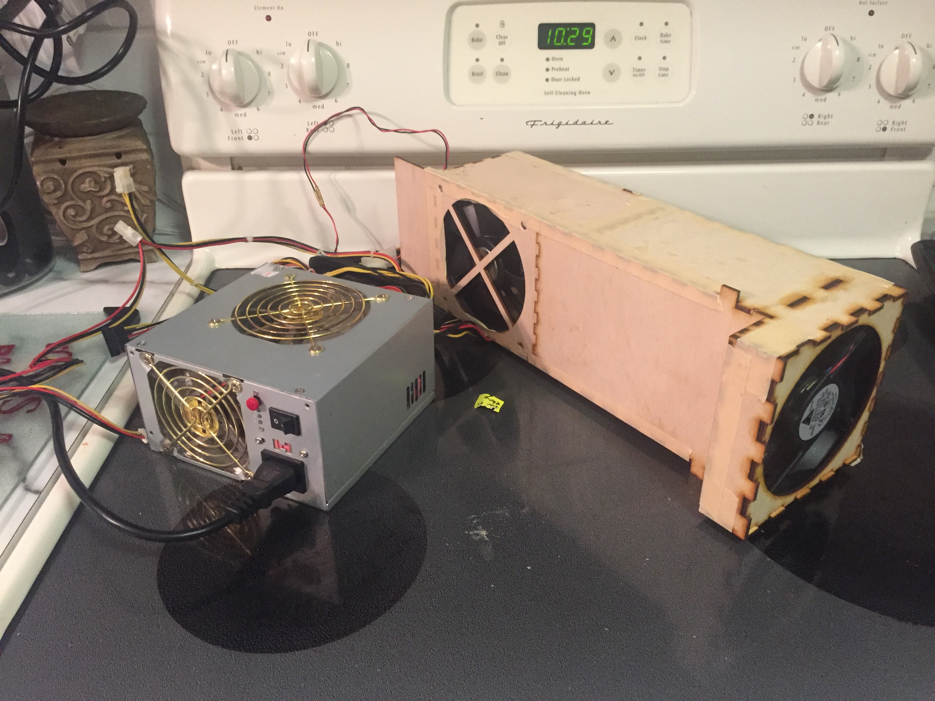 It’s not as quiet as the bilge fans that a lot of people use, and it’s kinda funky looking because of my space restrictions, but it moves a lot of air and it was really cheap!