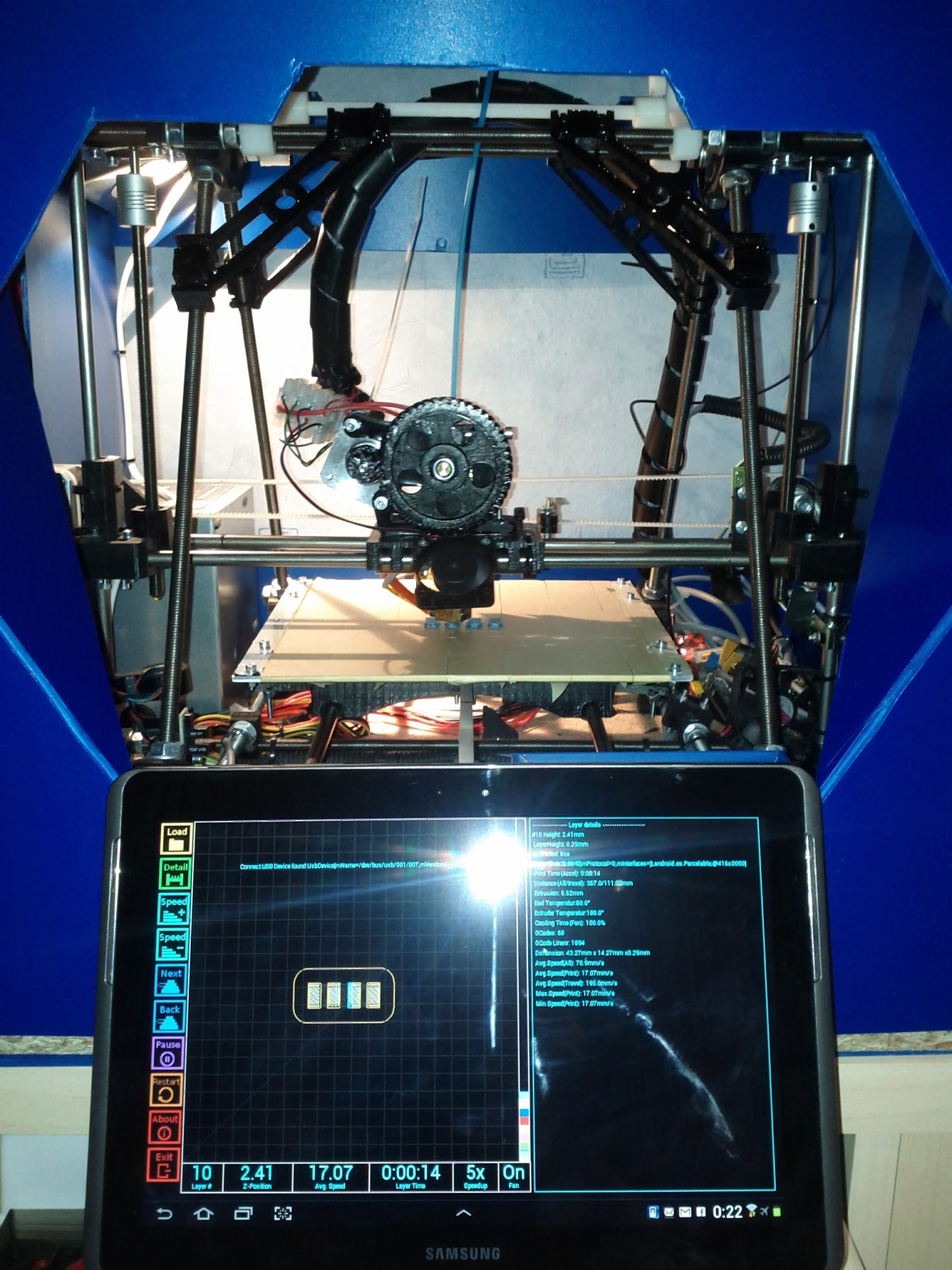 1st print using a modified version of GCodeSimulator on an Android Tablet over USB OTG cable. It works !!!