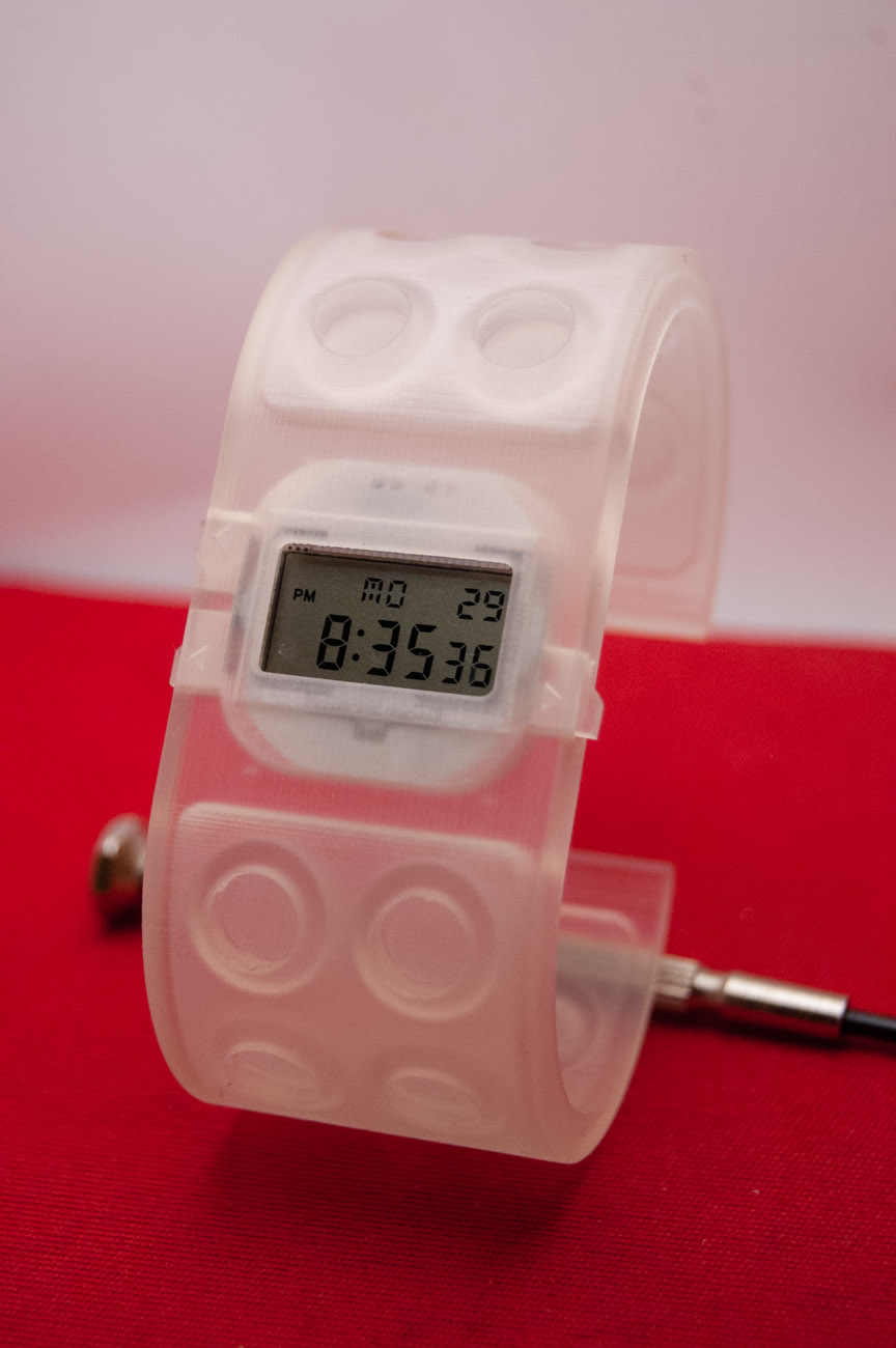 3D printed wristwatch case. Starting from a CASIO-like wristwatch bought at a flea market in Barcelona I designed and printed a case to be fully compatible, with functional buttons and a transparent look.