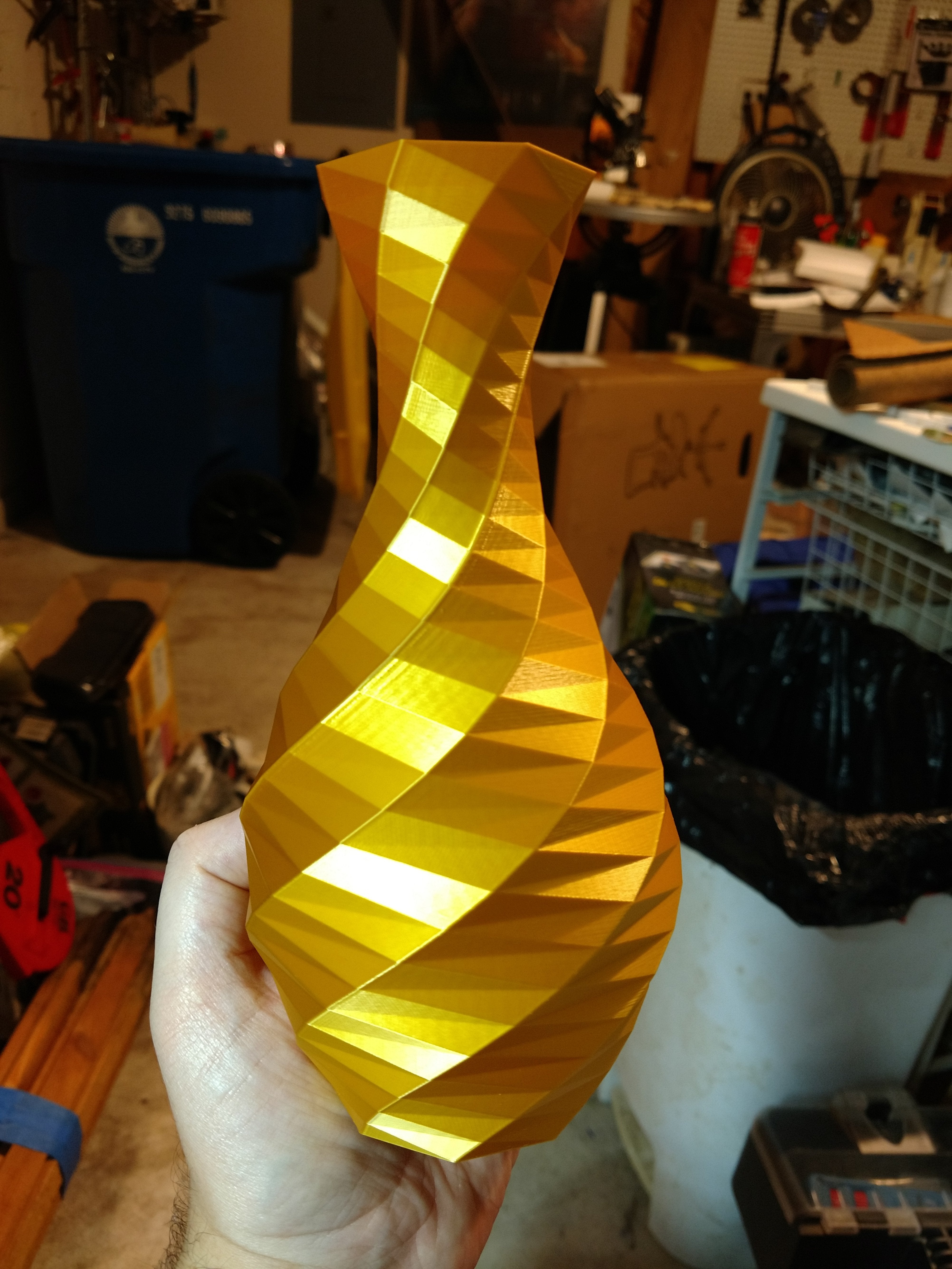 50% scale owl printed with the chinese gold PLA filament. A bit of stringing but easy clean up with an exacto knife
