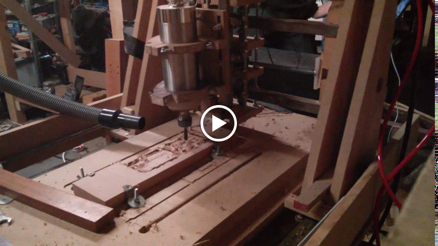 a few hours into this job, the router bit slipped down in the collet, embedded it self pretty deep in the wood and pulled things off course. I hit emergency stop, but essentially the job was ruined. Not happy