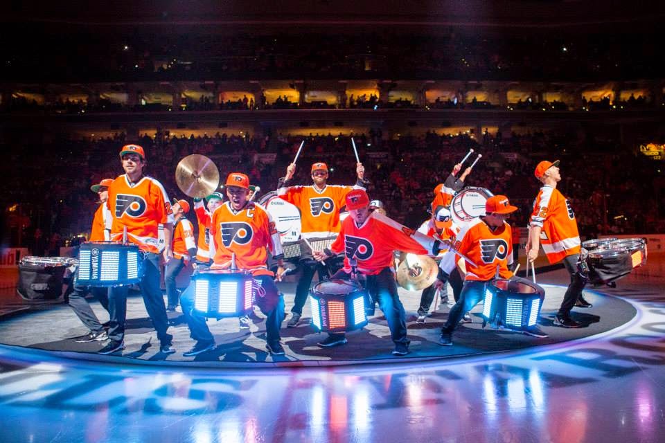 A LED drum line with what looks like 4 Smart-matrix panels per guy.
