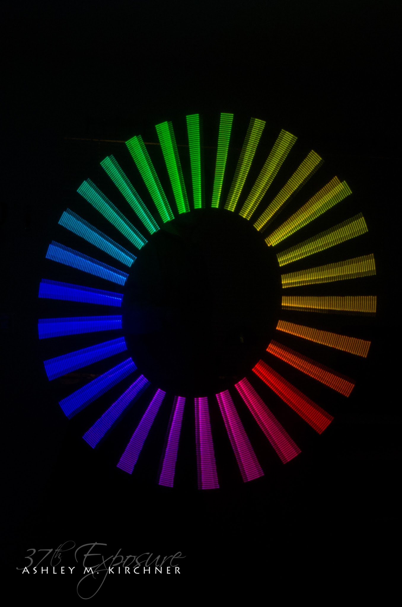 Last night I was actually pretty tired and was spinning fairly slow. The camera’s set at 1/2.5th of a second and capturing a full rotation. But I have had other pictures where the camera was set at 1/5th of a second for a full rotation.