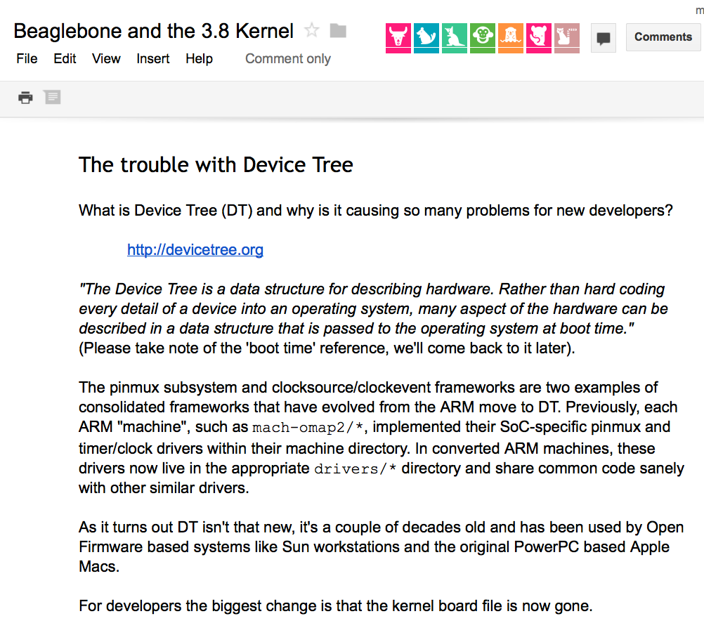 A MUST-READ article (thanks to @Koen_Kooi ) that fills in a lot of gaps for BeagleBone Black owners who have questions about the Device Tree (DT): http://j.mp/17GQF6M