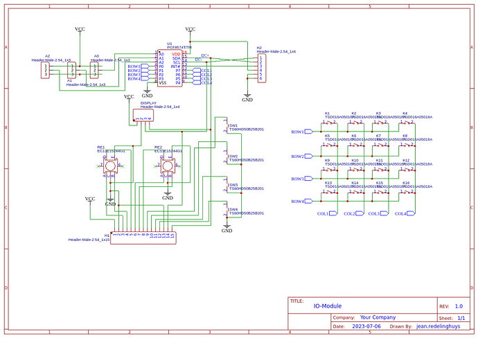 1x Matrix Keypad (4×4) Controlled via an PCF8574 IO expander with selectable addressing.