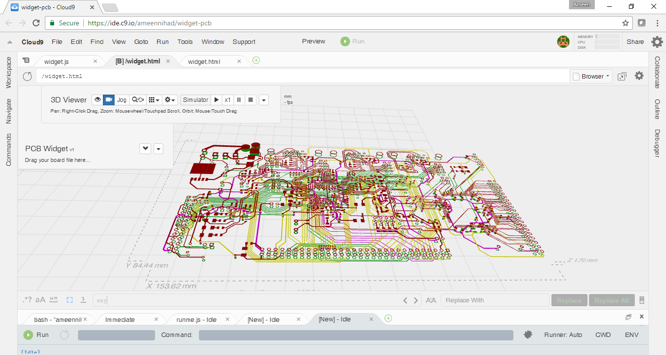 A sneak peek at my new pcb widget, the two boards rendered here are KiCad pcb files, the plan is to make it easy to support multiple types of board files, as a start KiCad & Eagle are supported, development is still at early stage, it might take months before this widget can see the light as a functional widget.