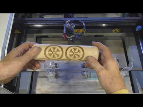 A very clever rotary design that uses no motor, software setup etc. It pushes the frame in the Y which in turn rotates the object being engraved!