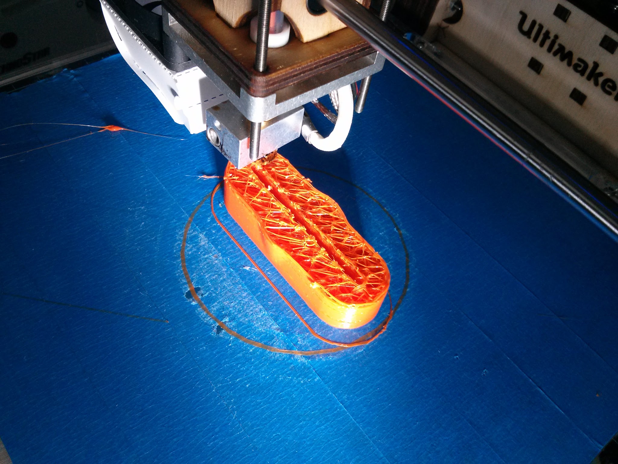 Ultimaker, 100mm/s, natural coloured ABS @240 and PLA @220 work like a charm.