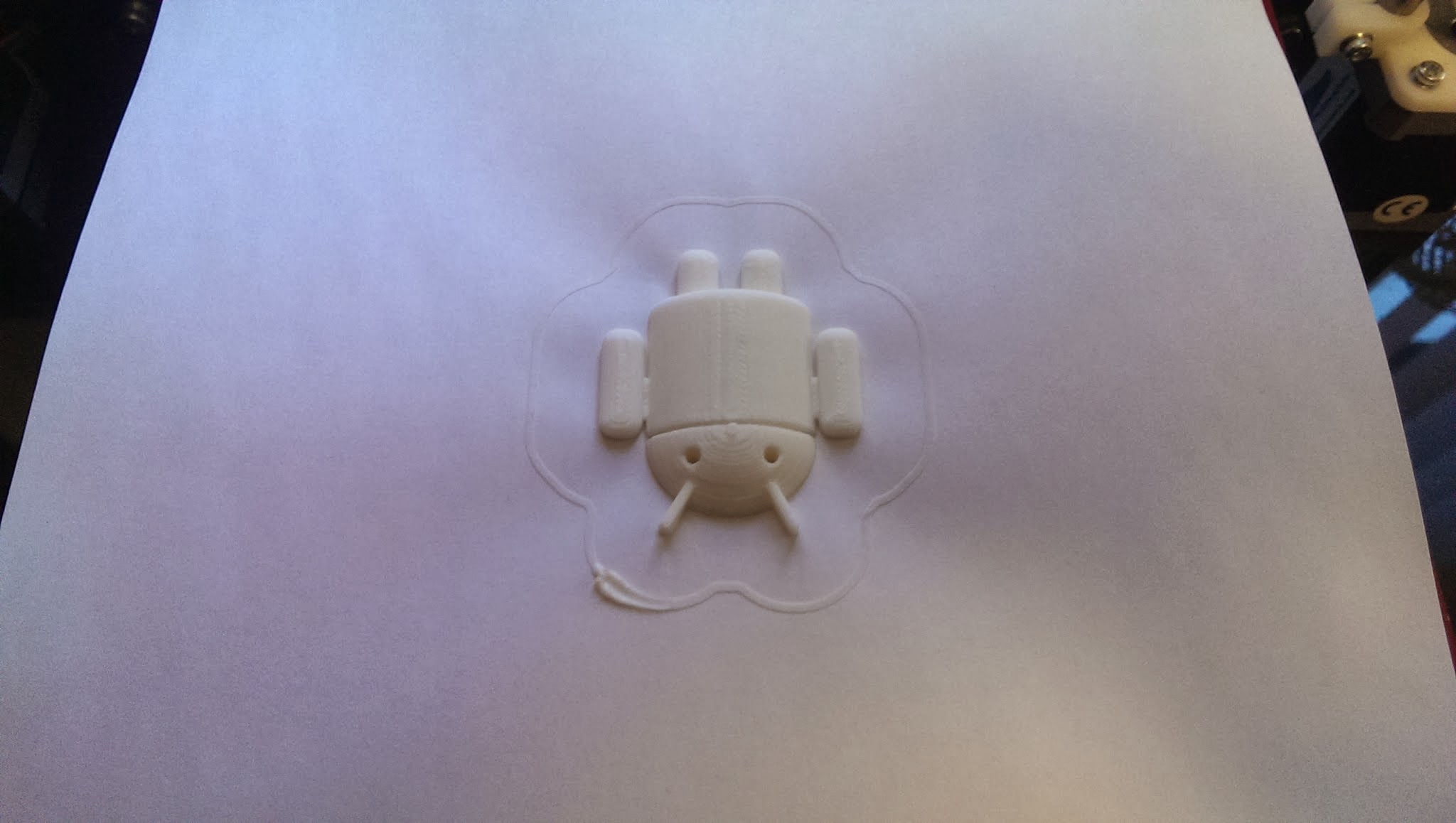 I’m getting some really good results using paper as a base for ABS prints. It has a number of advantages in that its clean, cheap, most people have some nearby, it sticks really well and yet is easy to remove. The only downside is it doesn’t discourage warping. IE the paper just creases slightly as the print warps (as you can see in the photo). Not sure if thats to do with me not having my temps right or not though as ABS is new to me.