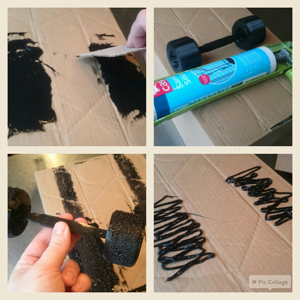 like this you wouldn’t even need ninjaflex actually. You could simply print an negative of the tires, fix the rims inside and fill it with silicone.