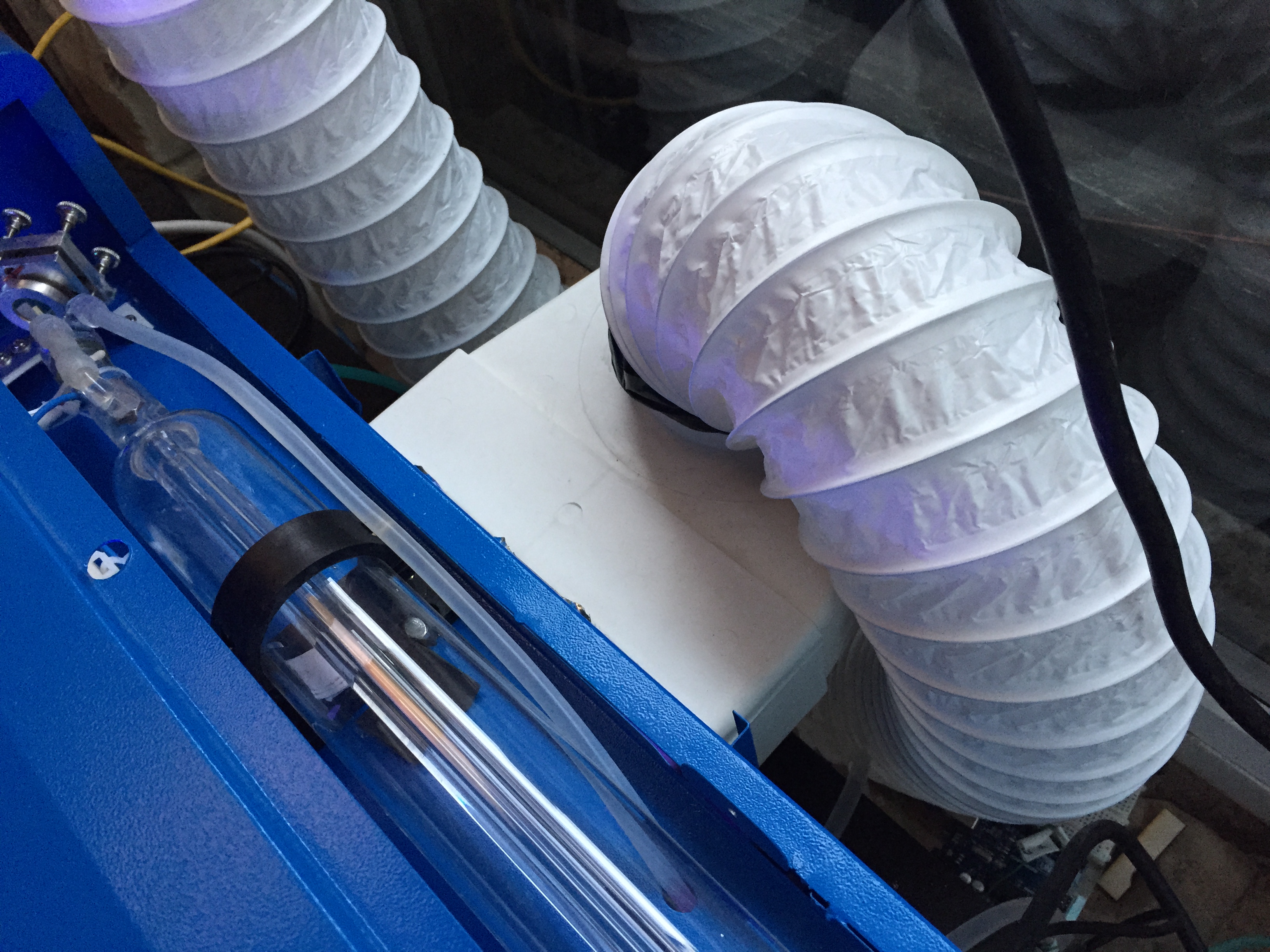 Added new ventilation system to my K40. I used 125mm channel ducting and an adapter to 100mm round flexi duct. It’s a lot better than the stock vent because I have gained additional working area