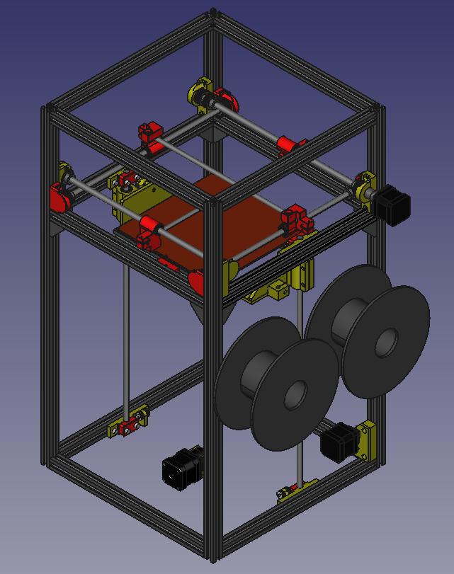 After drawing the spool, I think the motor on right side can be direct drive without compromising space. The extruder will sit on this side as well.