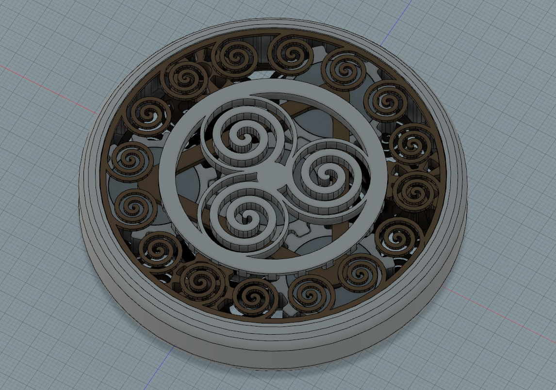 After two days of work, I finally completed something I’ve been wanting to tinker with. The main goal of this project was to learn about gears, but also to get something fun to play with. So, here is my fancied up fidget spinner. This is just a preview, I still have to print and test it out. I will post again when I have something physical to show. ^^