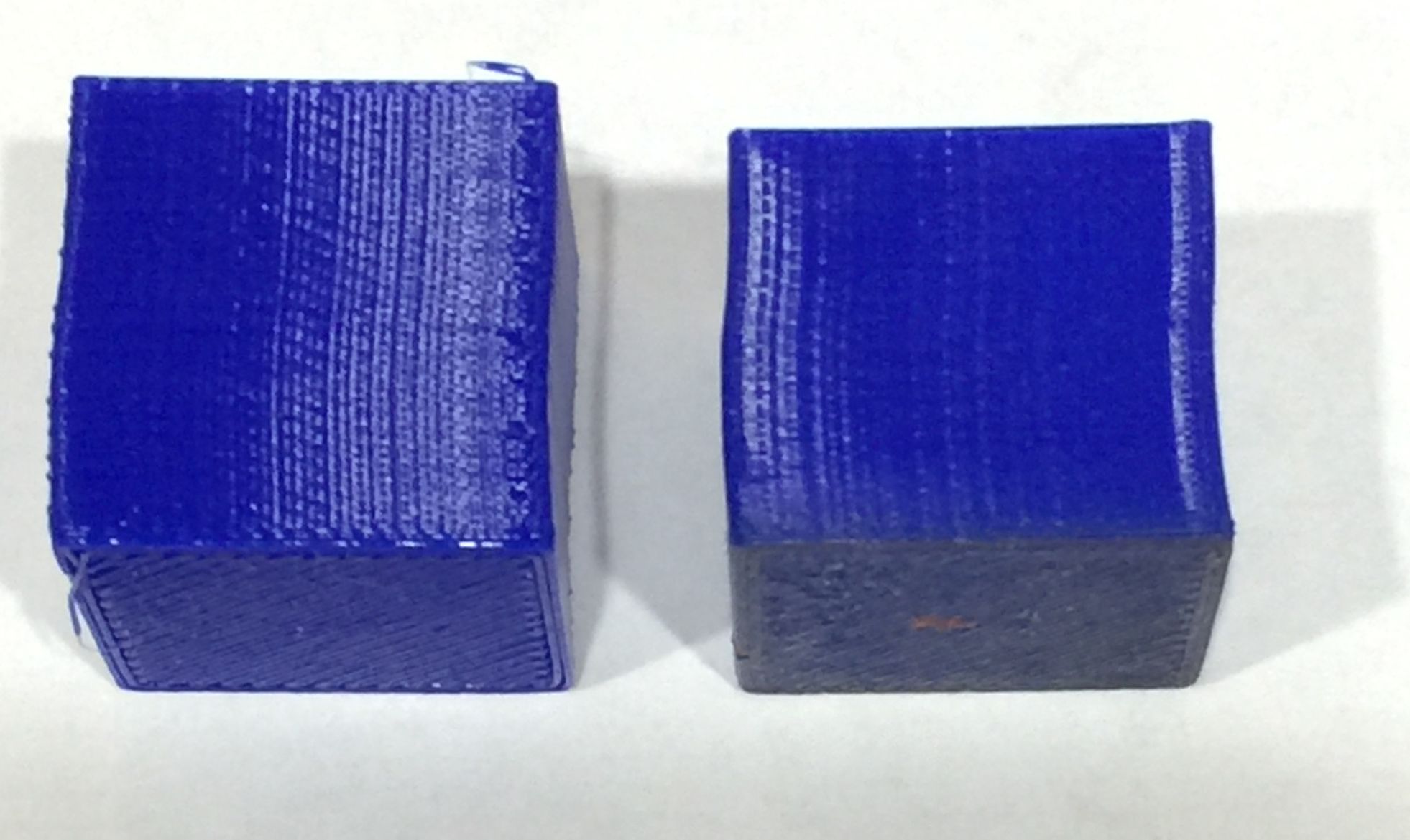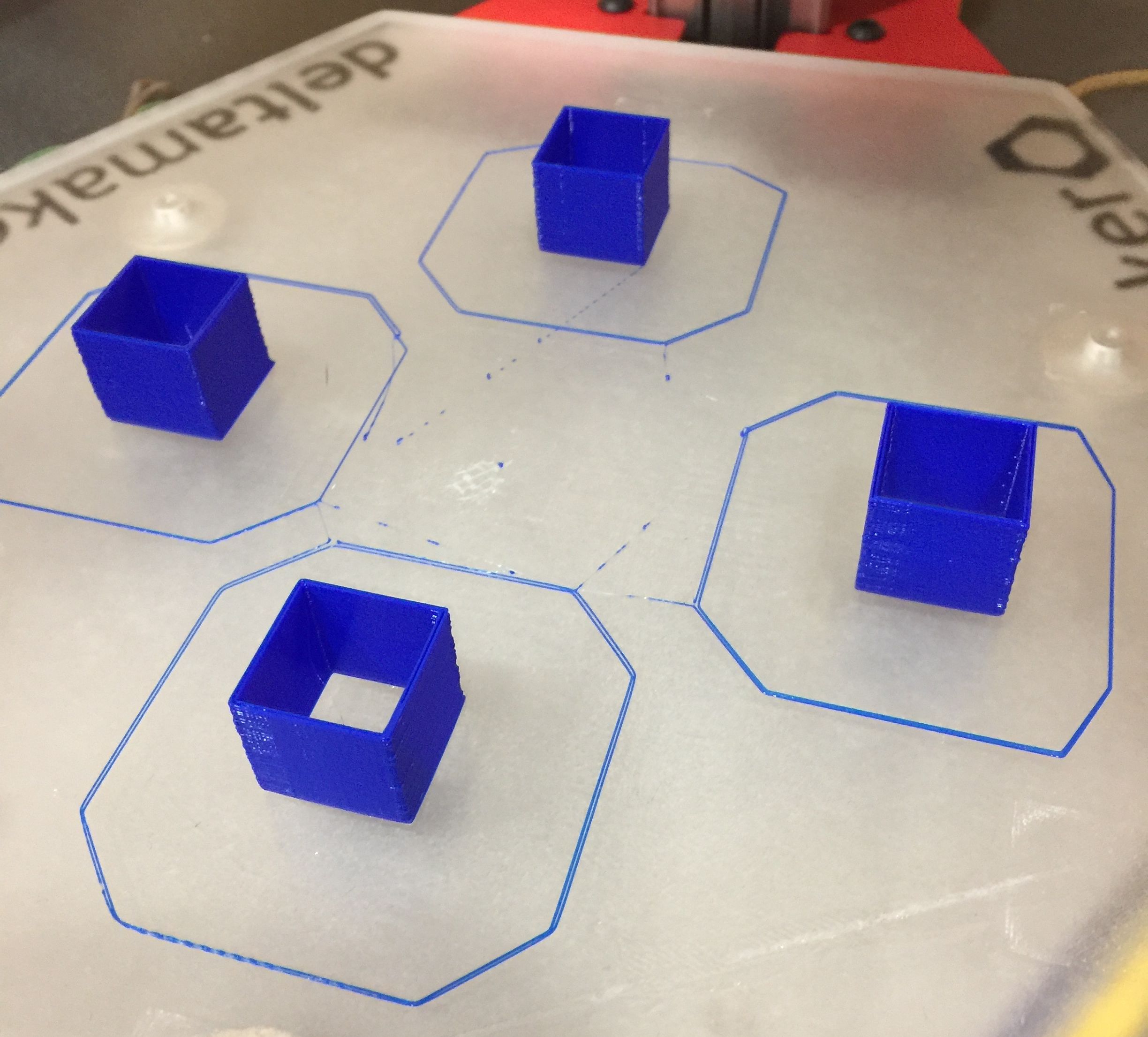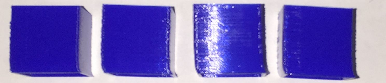 After years of great service, the last few days my delta printer seems to have had some X (or Y, it’s hard to tell) drift while it’s printing. I thought it might be a bug in Marlin 1.1.0RC (right cube) so I switched back to the 1.0 that has worked for years (left cube) and see the same thing. The other axis (Y, or maybe X) shows no drift - its sides are straight up and down.