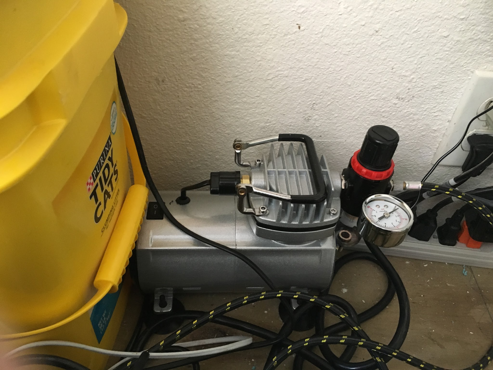 If you get a small personal electric fan to blow on the airbrush compressor it will keep it from getting too hot and will prolong the life of the pump.