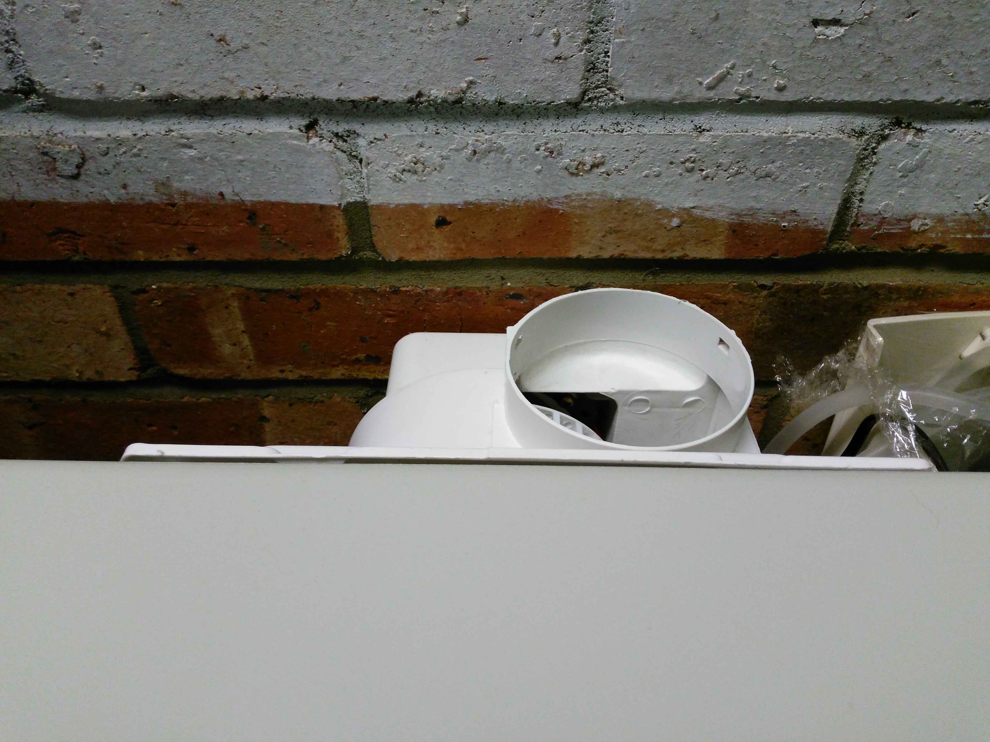 if you look on amazon you can get a plastic vent flange for like $5. Mount it in the back over the gap and you can put the fan wherever you want and not have it blocking the door every time.(or do as most do and replace it with something in-line) Makes accessing the tube a breeze without having to remove the ventilation.
