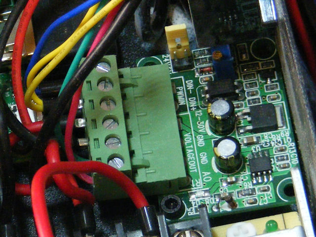 The yellow wire connected to “S” is connected to a terminal block that is mounted on another small circuit board. The blue wire connected to “G” is my problem. I first assumed that G was for Ground but I’m too chicken to just connect it and see what happens. When I first noticed that the wire was loose was just after disconnecting all the wires to the power supply so I could get to the micro sd card in the raspberry pi, hence there is a good possibility it was connected to ground.