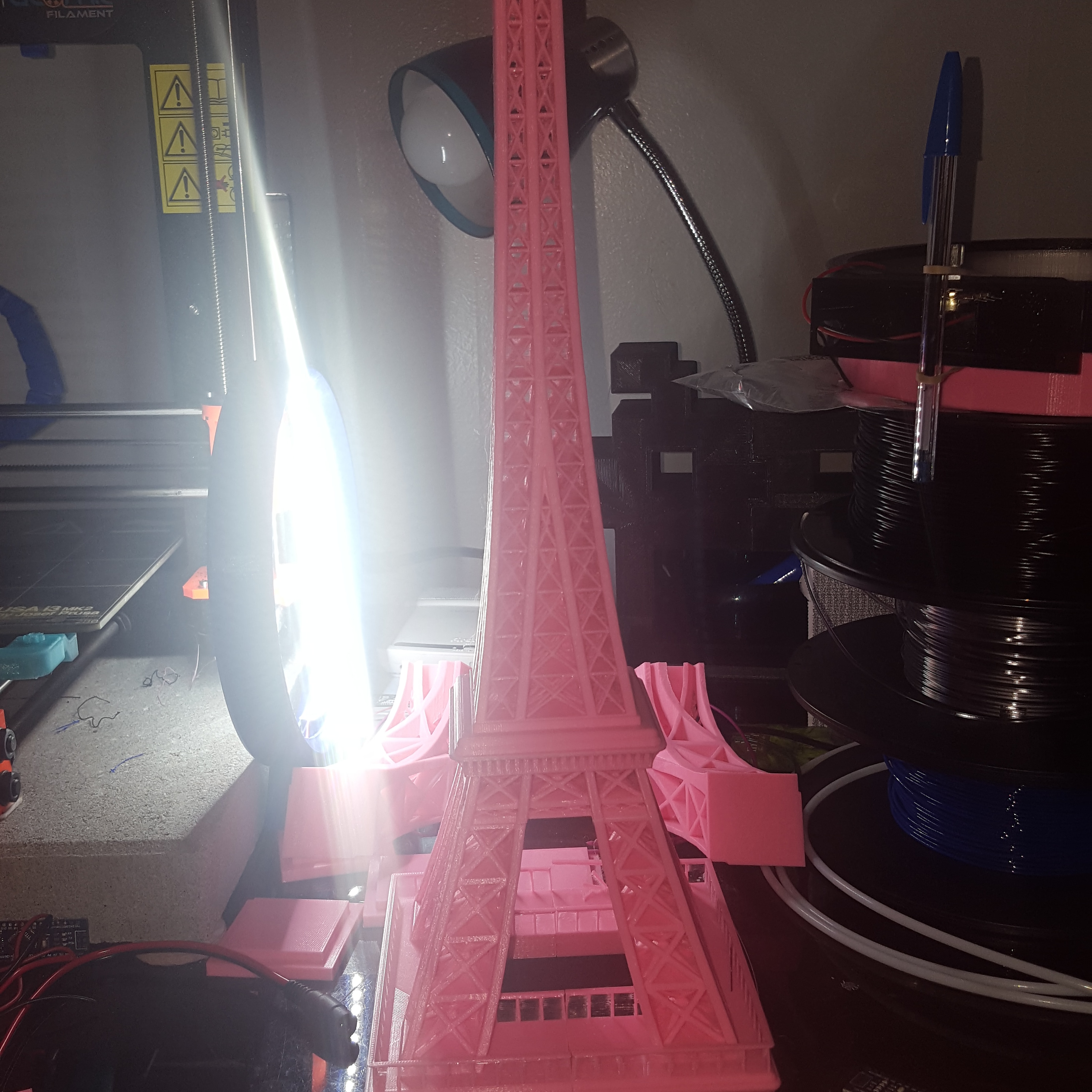 Originally it was meant to be 60cm but in order to fit the bottom pieces i had to scale it to 90% and even then each of the 2 bottom pieces takes 20 hours at .2mm layer height