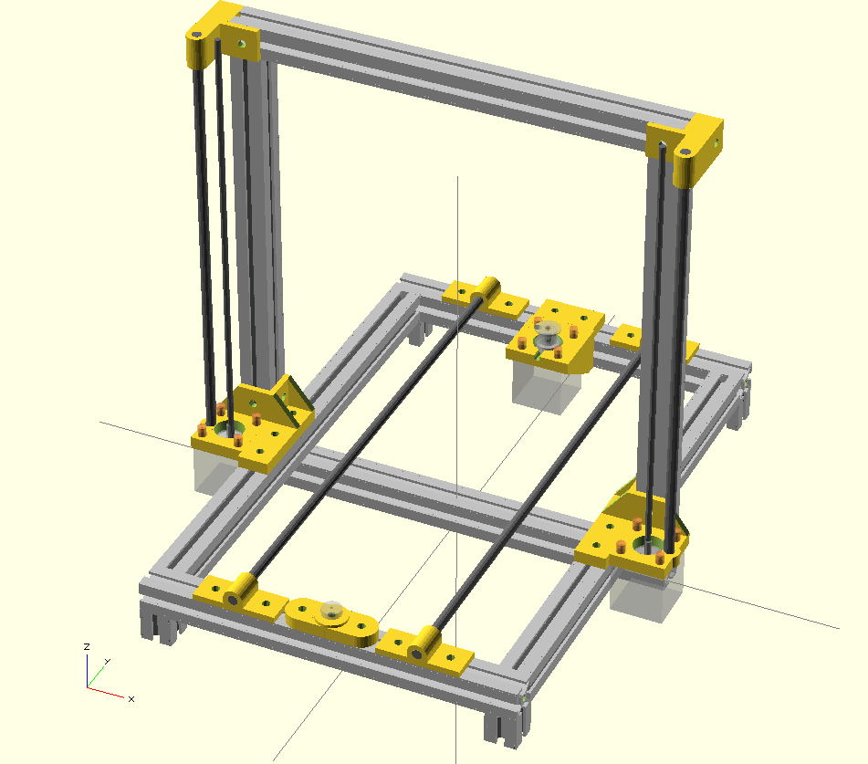 The Y axis smooth rod mounts are meant to be printed on end. The motor pulley is a GT2-3mm 16 groove pulley, but I will add in variables for different sizes (and check them).