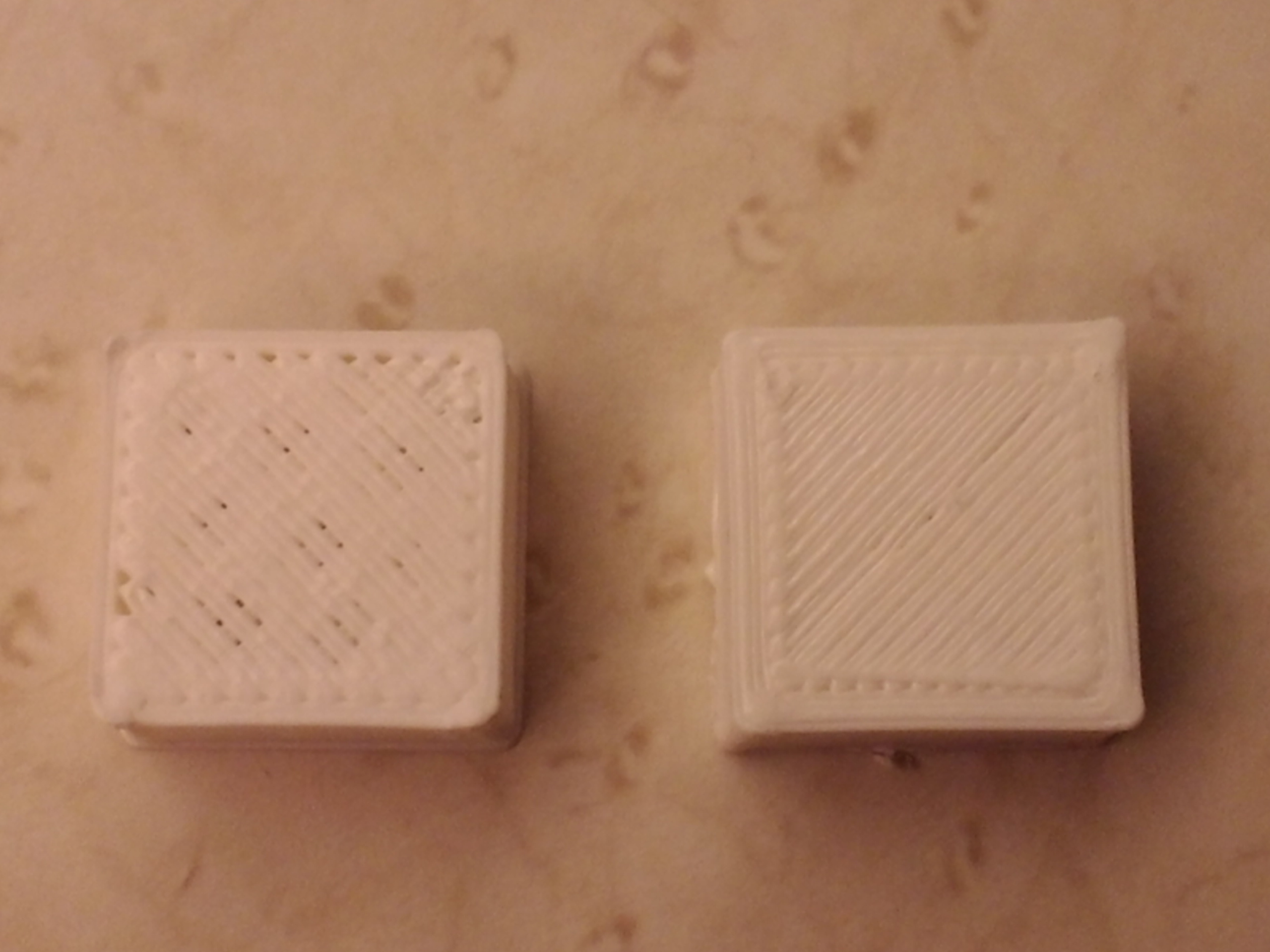 And another example… Left is the best I could get with a simple 20mm cube and slic3r playing with it for weeks. If i increased the extrusion factor it would print out of calibration, and after recalibrating I’d be back to the gaps. Right is with SFact…