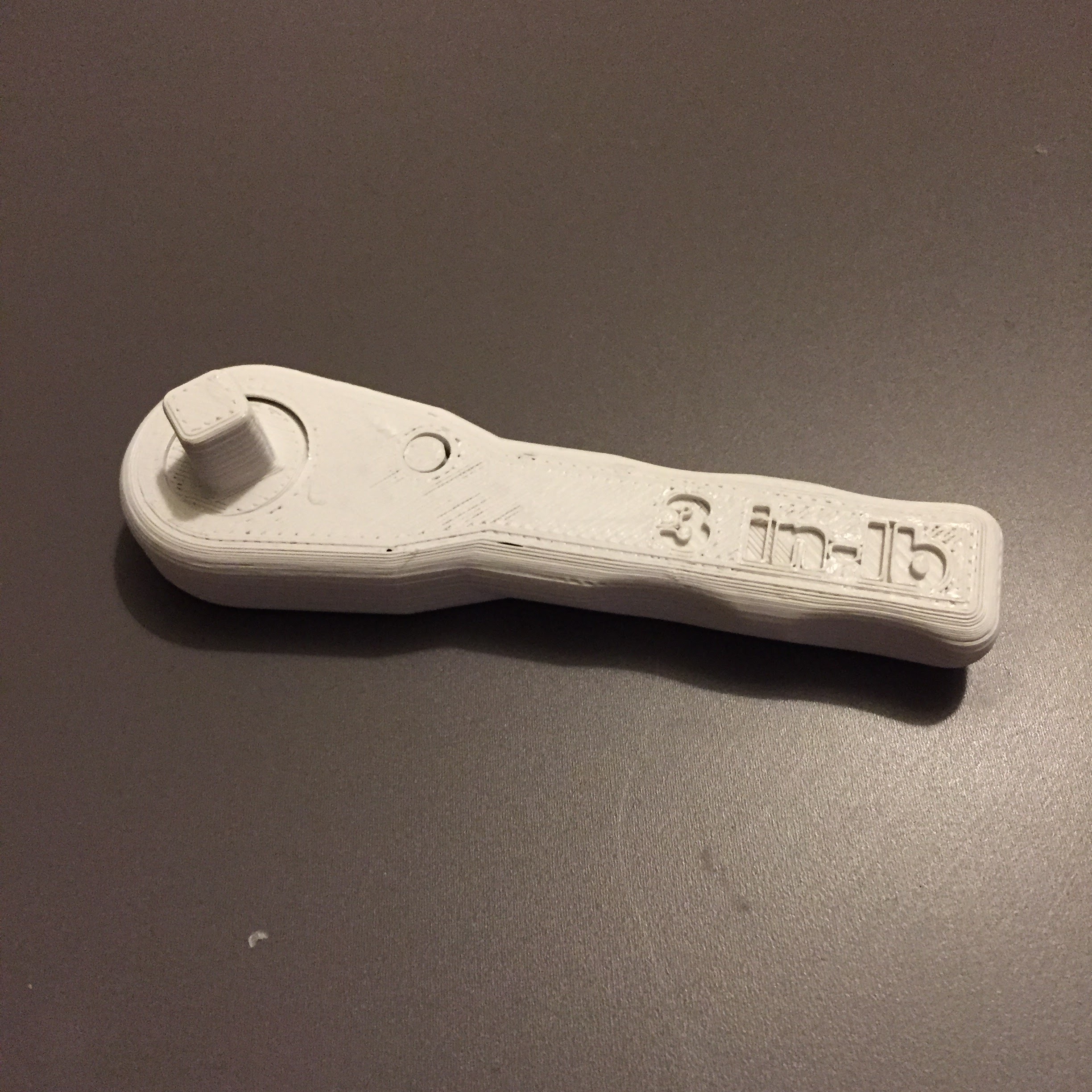 And finally printed the space wrench. Had to replace the idler in my extruder, then upgraded the hotend from a MakerGear to a J-head, added the heated bed, and then changed filament because I ran out of natural PLA.