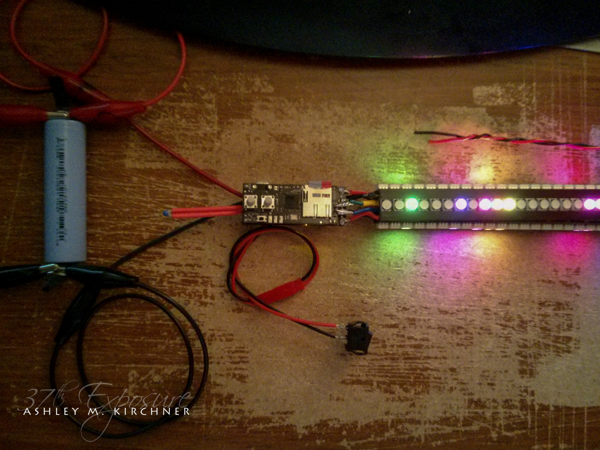 In the 30 minutes it took me to write this with the unit cycling through some 65 different images, battery power went from 4.07V down to 3.93V … aaaahhhhh. I’m happy! This means I can run a 5 minute show several time in one night. YES!