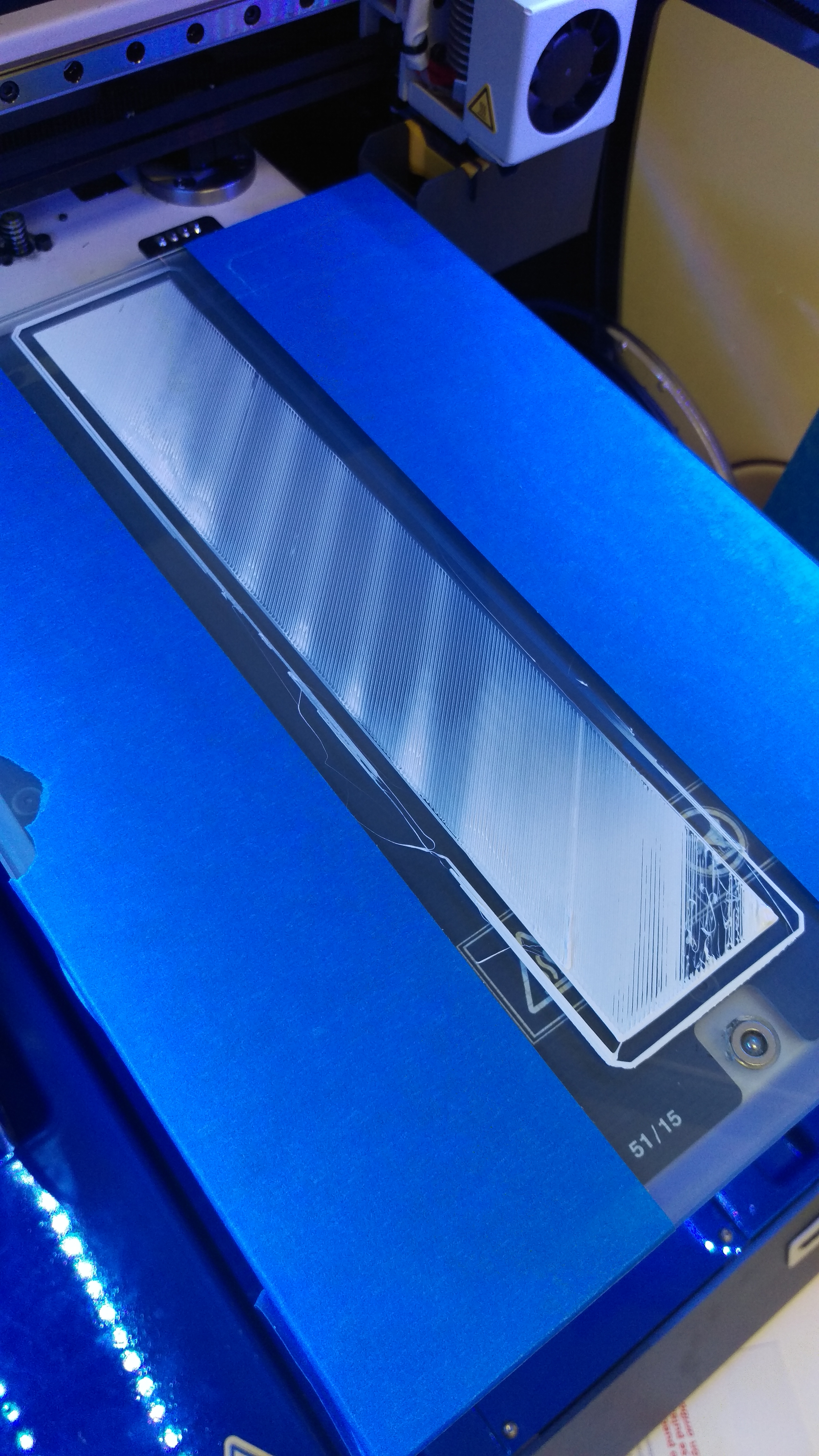 Any Ideas how to fix this. The layer height is 0.125mm and it is running at 6mm/s. The bed is 70C and hotend 215C. The printer is a BCN3D Sigma. The printer has a built in bed calibration and z-height calibration that was done right before this print. It appears the hot end is closer to the bed in the middle of the bed and farther away at the ends like the build plate is warped. I have a flat gannet stone Ive set it on to make sure the glass is flat. Ive also double checked the bed is in the grooves for the magnets. Ive printed parts at each corner of the bed and the left side is so far away from the extruder and it doesn’t stick. Then on right side the extruder is so close nothing is extruded.