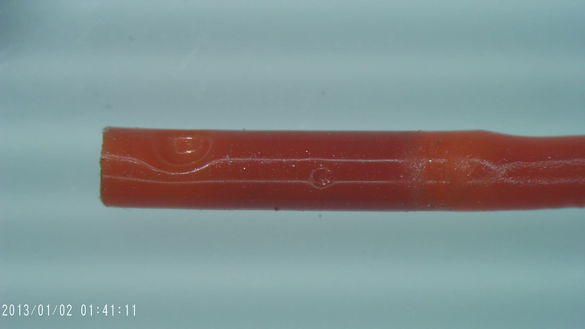 Anyone know what this would mean? Is it trapped air inside the filament or caused by humidity? Moisture? Or is it just nothing? Pulled it out of a hotend.