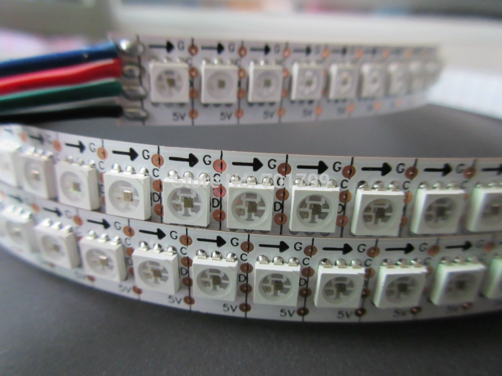 Also - a major difference between these and the WS2812’s, when it comes to refresh rates. With the WS2812s, if you push data at > 400Hz to them, they start to glitch out and you have Weird Shit[tm] start happening. With these, I can drive them at over 5kHz, and they don’t react badly at all - which means you don’t have to worry about that whole “don’t write data too often!” garbage that you have to with the WS2812s.