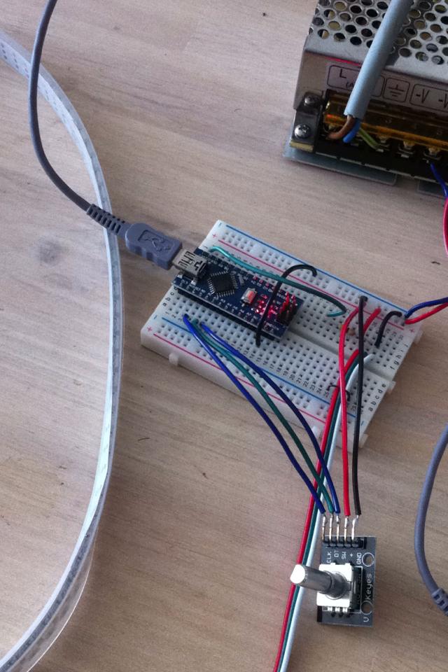 Arduino, WS2812b (122), encoder KY040. Now looking for the right code for changing color and brightness with 1 encoder. No-click = color change, on-click=brightness. Anyone having some code around to finish this thing?