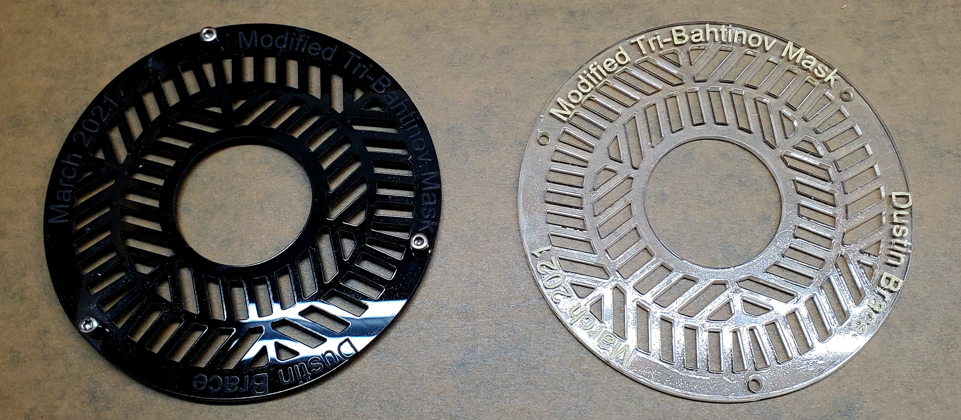 Has anyone used their K40 or similar cutter to make tools for astronomy? I have enjoyed the hobby/obsession of amateur astronomy for a couple decades now and just realized that there may be some instances where I can make tools or things to assist with the hobby. I saw a post on CloudyNights about making a Tri-Bahtinov mask. That is a great use. I also think that making aperture masks out of thin ply might be a good application.