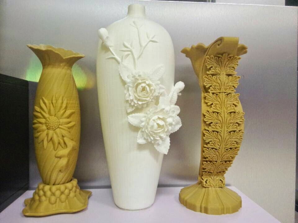 @Kent_Morrison Of the 3 vases shown, only the one on the left could be cast easily, but mainly the 3d printer allows you to make a complex object easily and very cheaply. Once the printer itself is there, the materials costs are negligible. However the ability to create a work of art, or a manufacturing prototype, or the master to make a mold so you can produce thousands of copies is priceless.