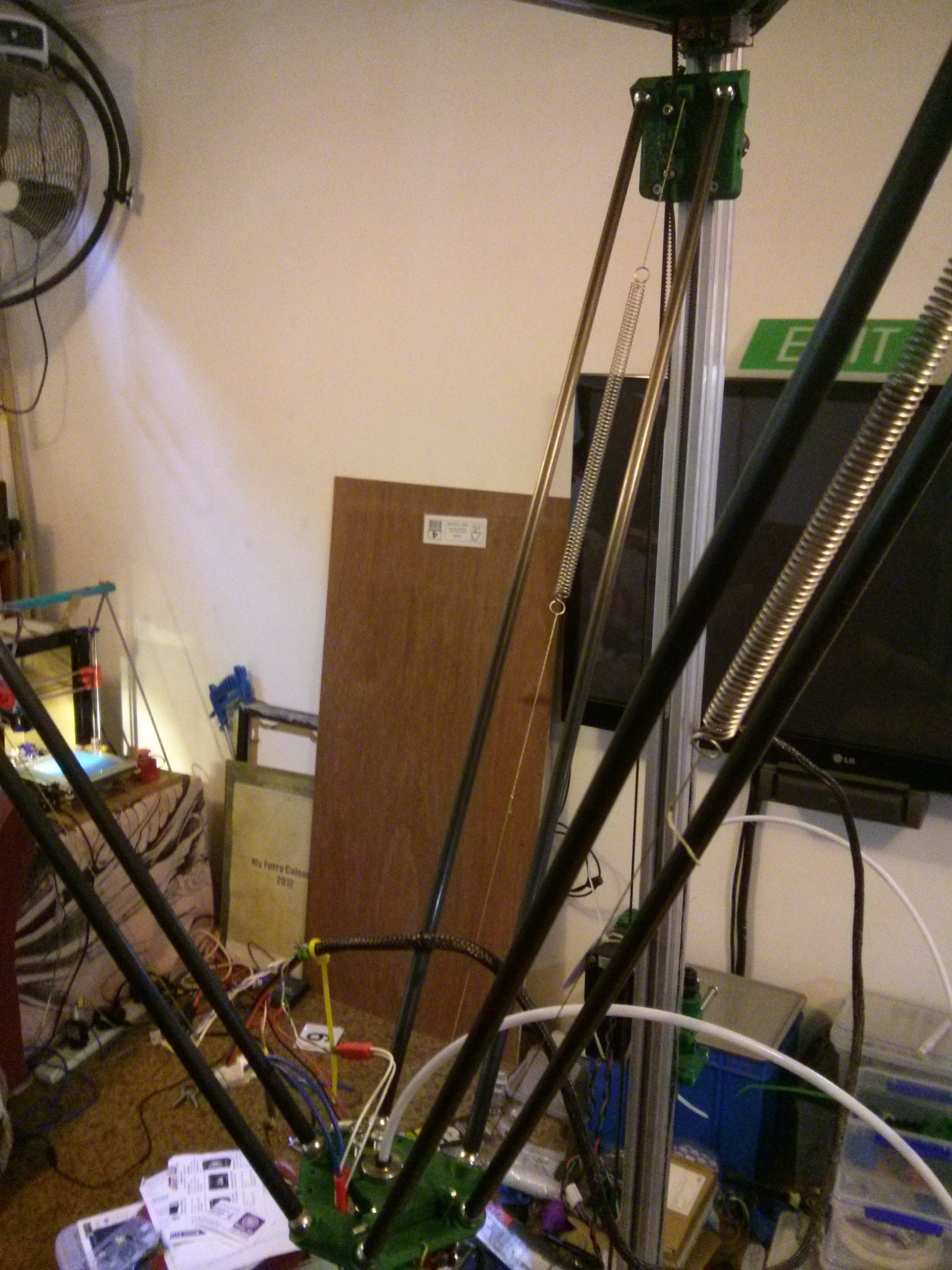 This way, when it fails, is a bit spectacular, but the head ends up dangling on the retracted springs above the bed, rather than falling(In this case some 700mm) and crashing into the expensive glass bed.