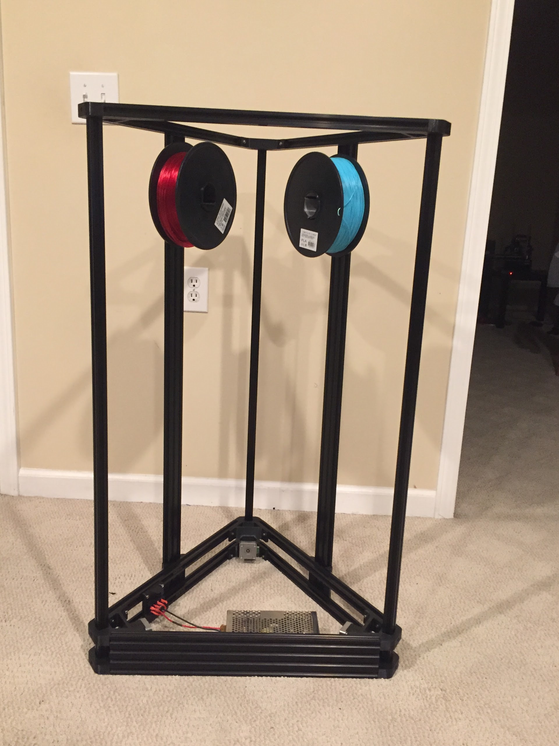 Nice way of hanging the spools, yes. Looks like a nice and sturdy frame as well. What are you going to use as a dual nozzle?