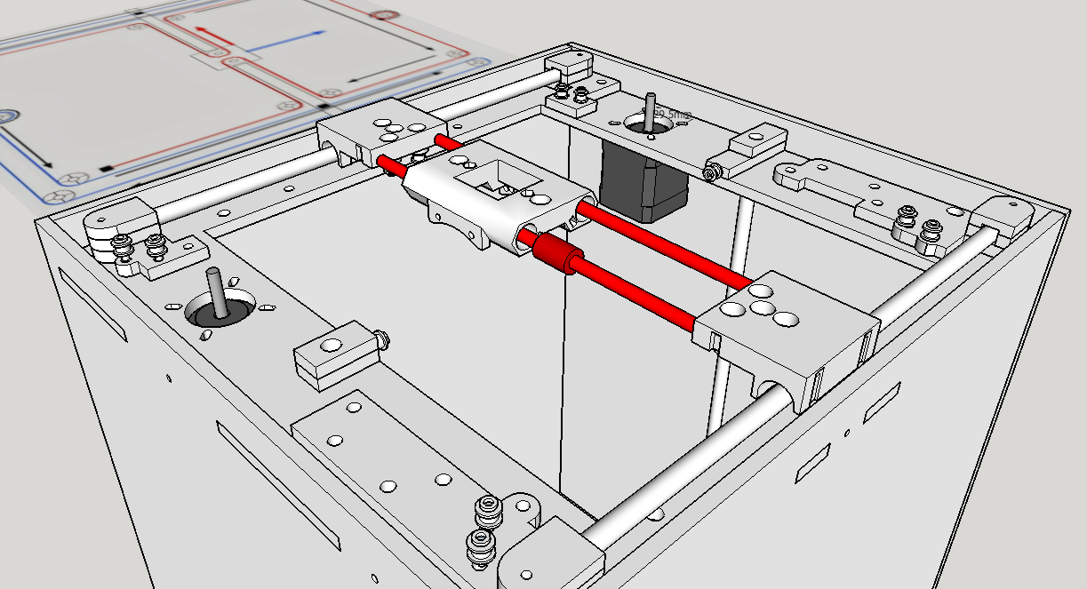 As it’s an exact dimensional copy of the sketchup model posted on here, including using its x-y gantry, but made in 6mm mdf (by taking the plastic components, slicing them into 6mm bits and assembling) I am unsure why it resembles an h-bot or makerbot - unless the eustathios is a copy of those?
