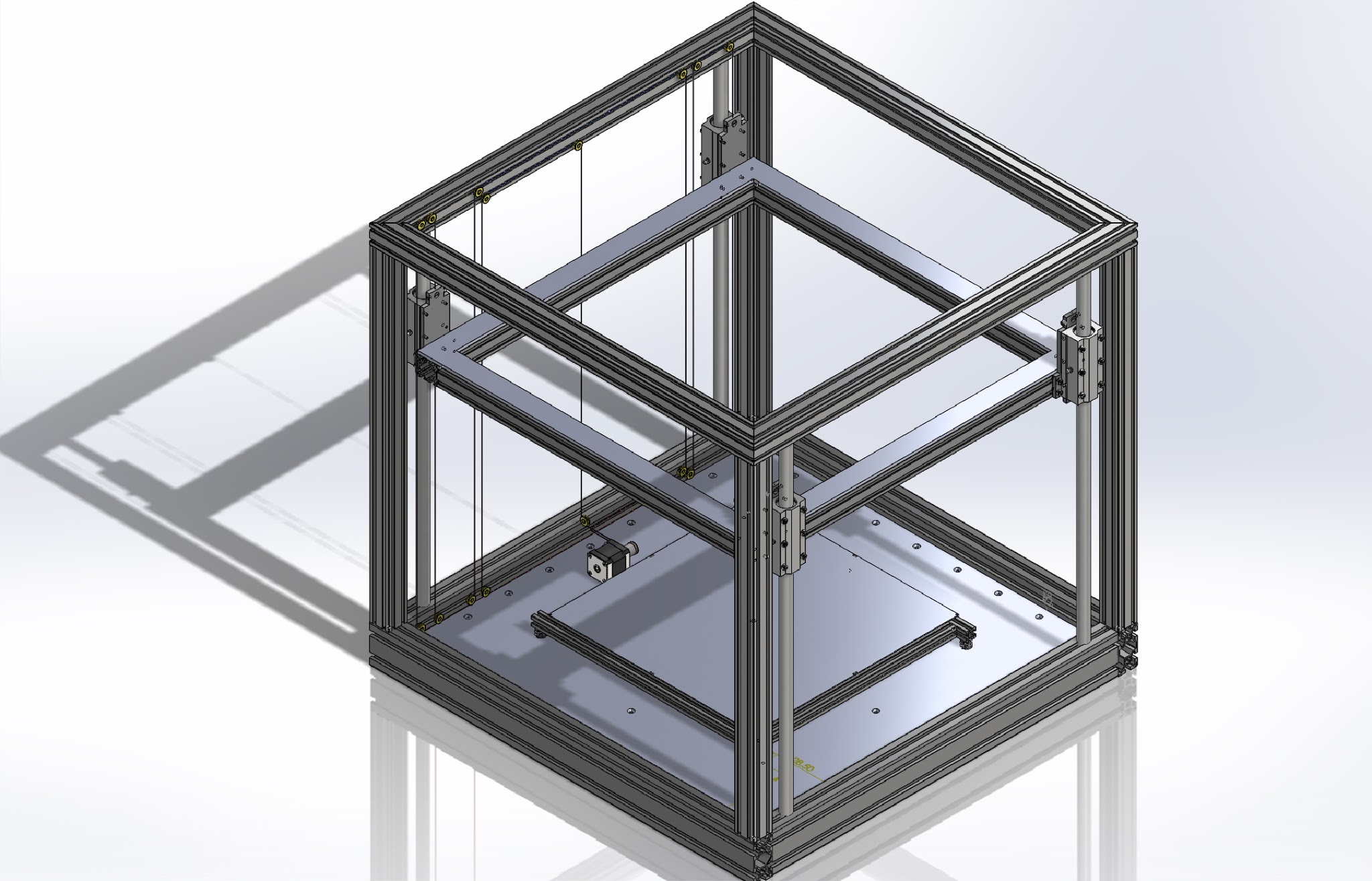 The cube is 800x800x800 mm with printable area like 400x400x400 mm. What I want to try is to let the printed object stay put and lift the gantry with spectra-line to get rid of all the Z-artifacts. I also want to drive the X and Y-axis on the gantry with spectra-line/belt, and if possible use a dual Bowden extruder.