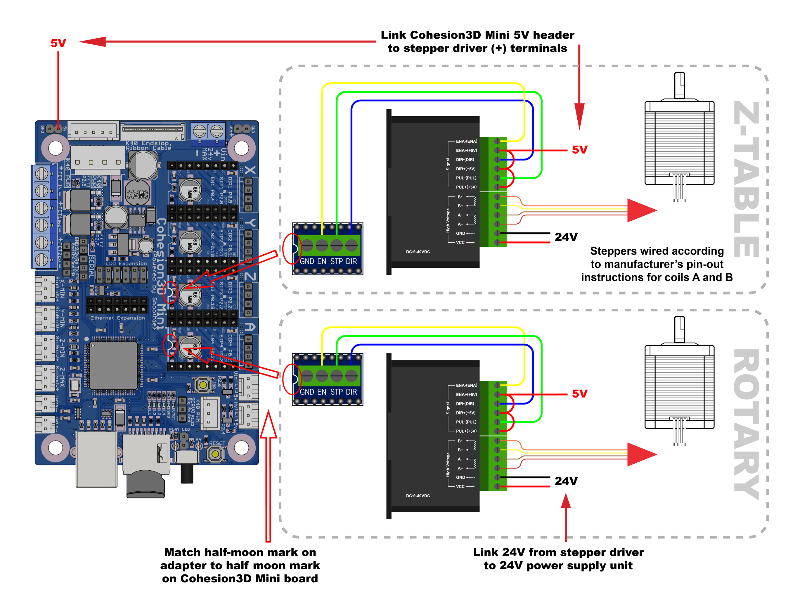 @William_Kearns the stock LASER POWER only provides 24V @ 1 amp so another stepper (Z or rotary) cannot be added to it. Most add a 24VDC supply and run everything on it as I think the diagram above intends. Where did the above diagram come from?
