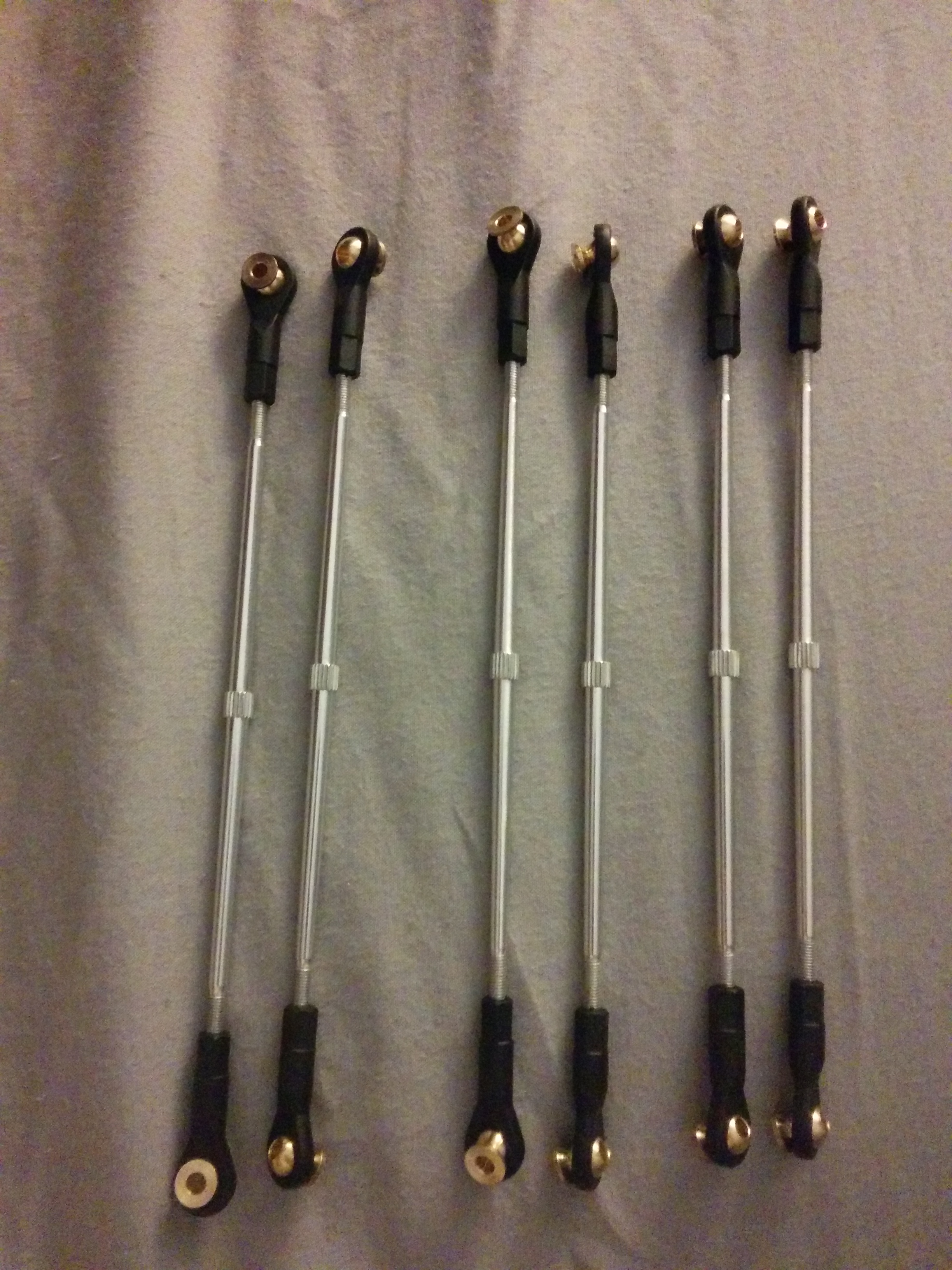 At the minute I’ve just screwed the traxass joints straight onto the aluminium rods. One end of the rod is a left hand thread and one right hand.