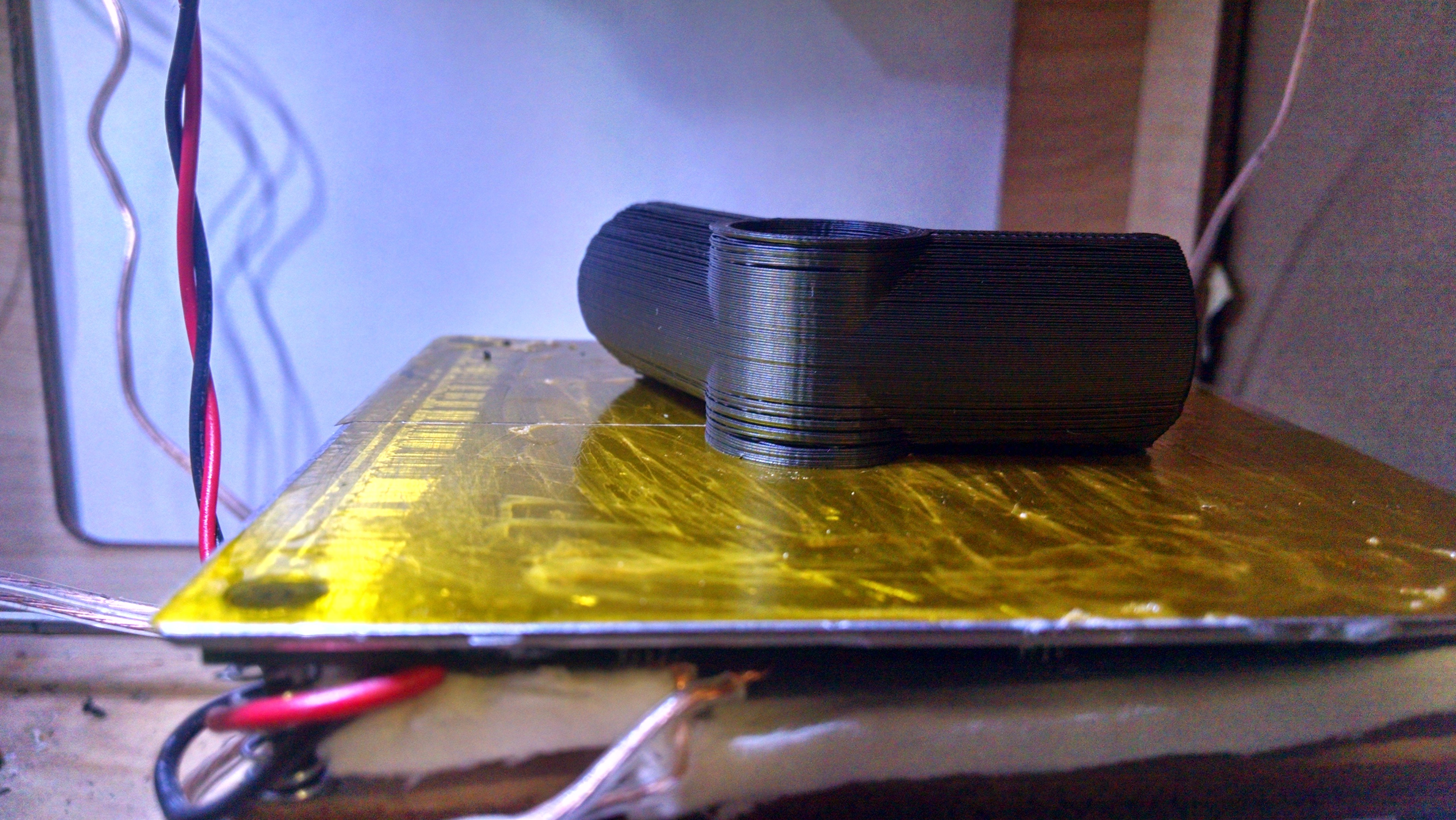 It’s ABS, 3mm. printing at 215c. Two fans pointed at the nozzle, in a heated chamber. The Spool does offer resistance, but for this particular print I was manually rotating the spool, it shouldn’t have experienced any resistance.