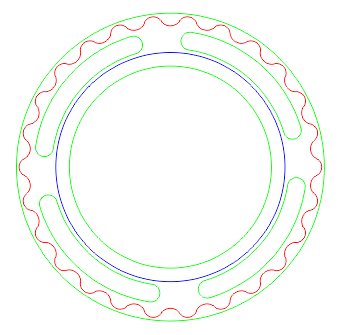 The pink or kerf cut is a series of shallowly engraved lines that will allow you to bend the piece. Blue or internal cut I am not positive, but I think it is exactly the same as an external cut, but is always on the inside of the object, Ie, after running the blue internal cut there should be a disk cut out that will fit inside the blue line, so after doing the external and internal cuts, the object is actually just the items between the red and blu\e lines, the rest would be scrap. But don’t take what I have said as gospel, I am just stating what I THINK they might mean, I am sure there are more experienced users around that can explain it all for you.