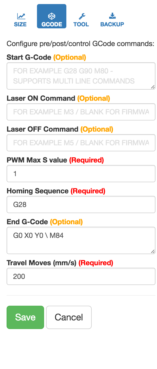 Can someone tell me what configurations are good to start with on Laserweb3 with a smoothieboard and k40?