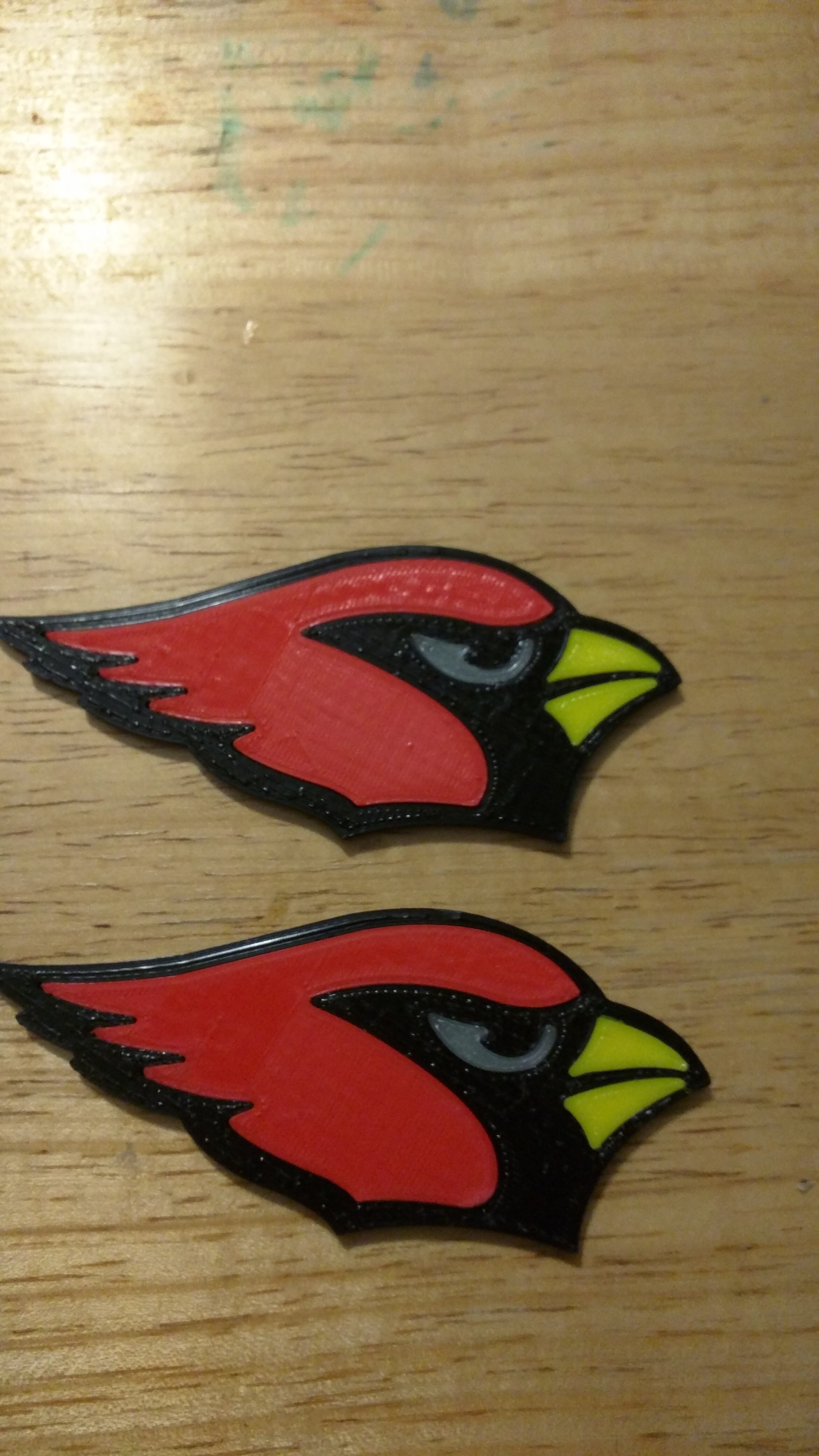 Cardinal heads I made. 4 different prints assembled by snapping them together.