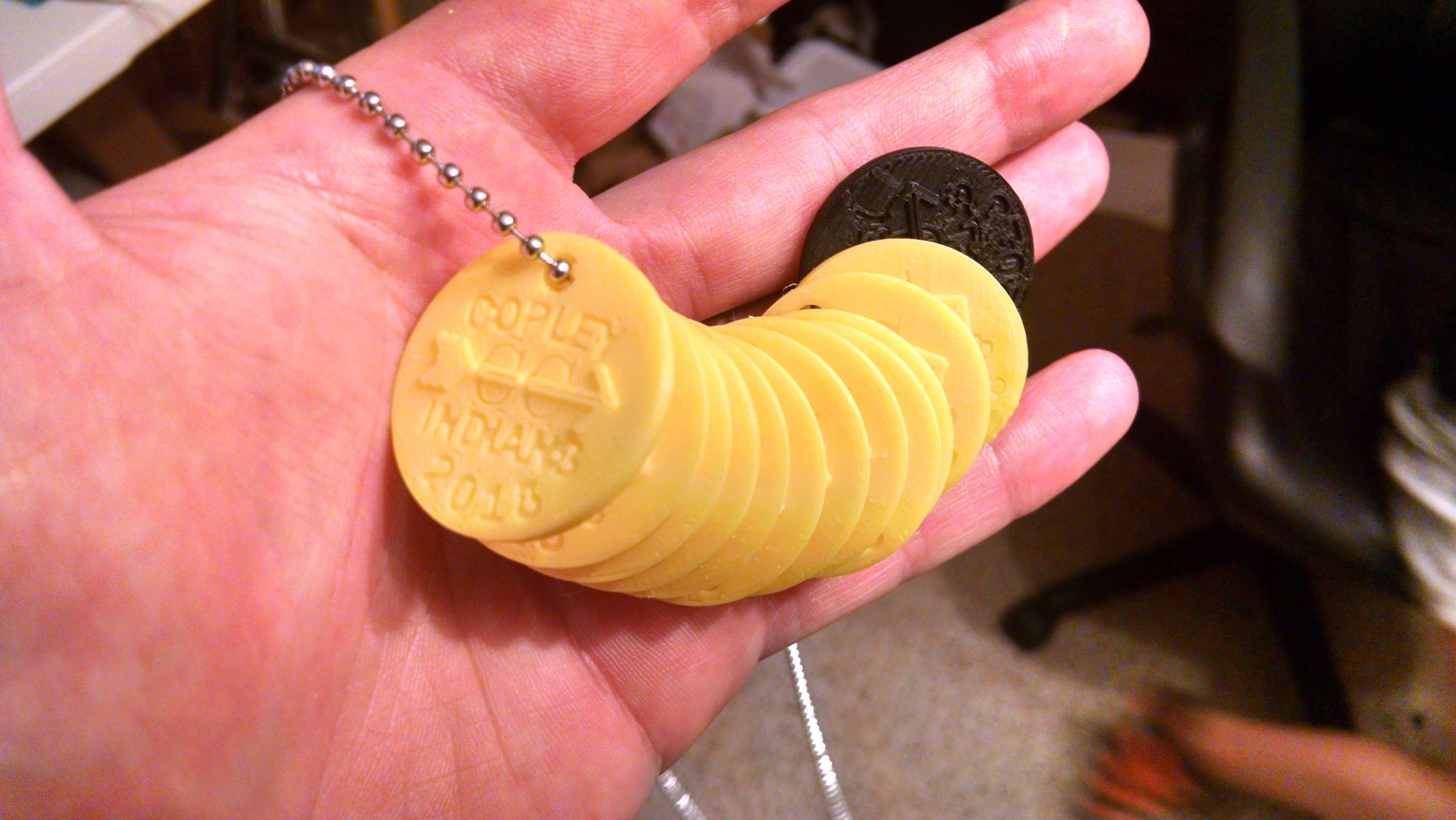 Check out these tokens for Copley-Fairlawn’s new K-6 cross country team! I designed them in Solidworks, then printed them on my Afinia H479 printer. So far, made about 150 all together.