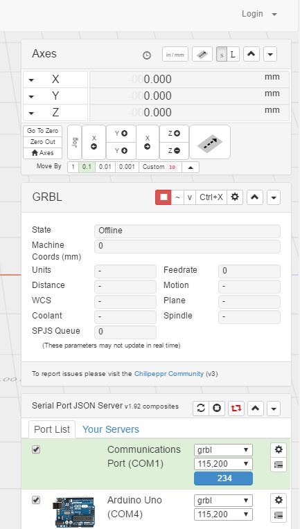 OK, that double-checked port setting was my error (I sent my machinist out to hit some golf balls). We did, and do have Arduino Uno COM4 grbl 11520. The GRBL state is still “offline.” So we are back to square 1 and I don’t know what other info that I can provide.