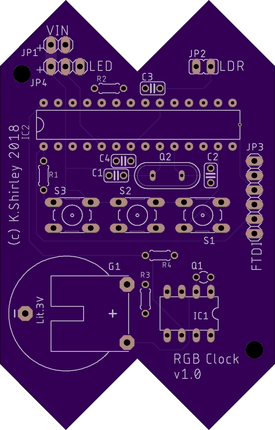 Circuit designed for my RGB Clock and PCB ordered from OSH Park, can’t wait to get them in my grubby mitts I have also been updating the github wiki to explain all the modes that the clock can do along with how to build it.