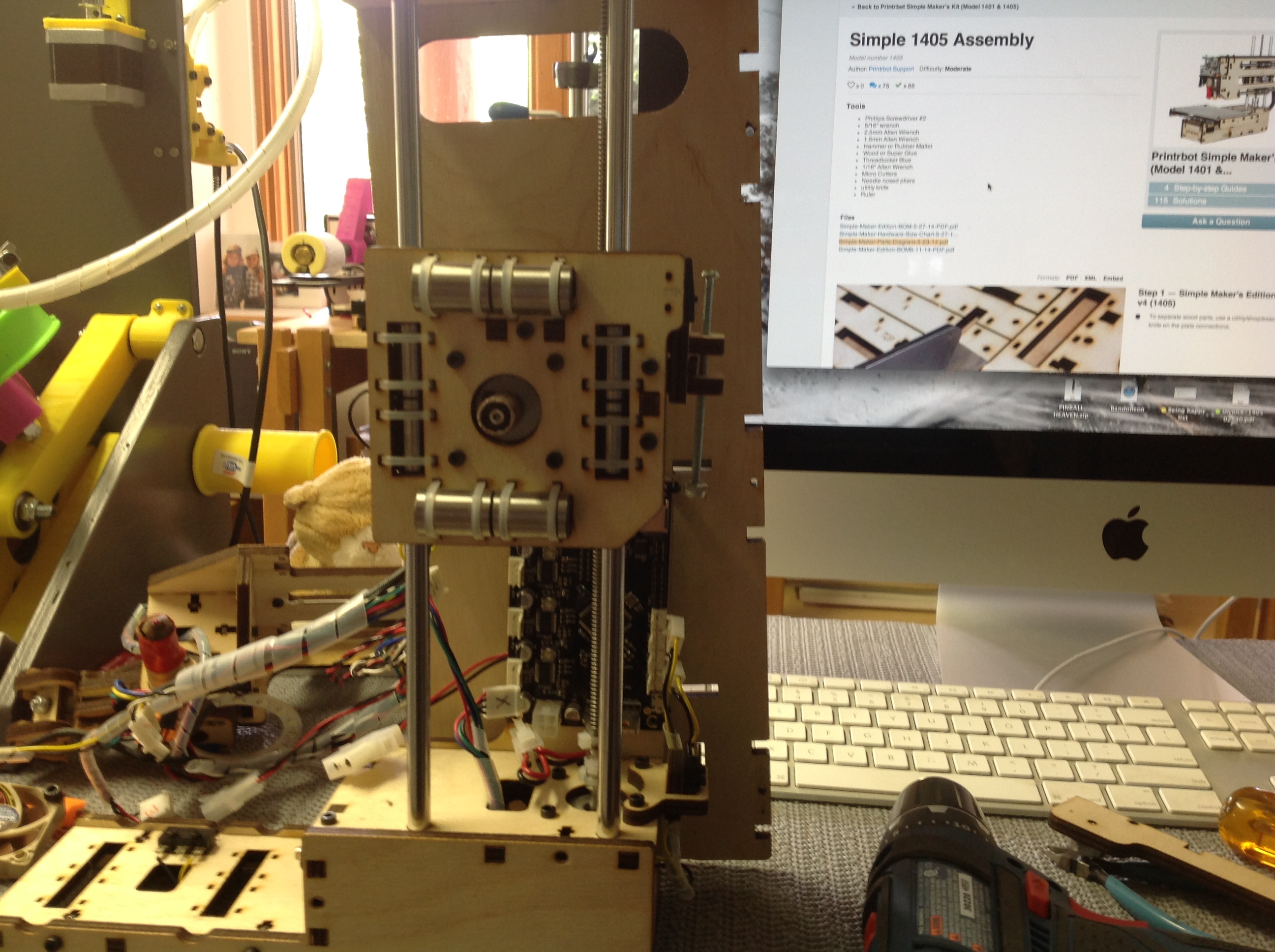 She is resting now about 15 feet away. Nausea. So back to building the next gen printrbot. Best thing I ever did was get a wheeled workbench. The common area is all linoleum floored so I can move it easily. I’m a bit weird as the bench is next to the grand piano and nice paintings. It’s all creative stuff, right?
