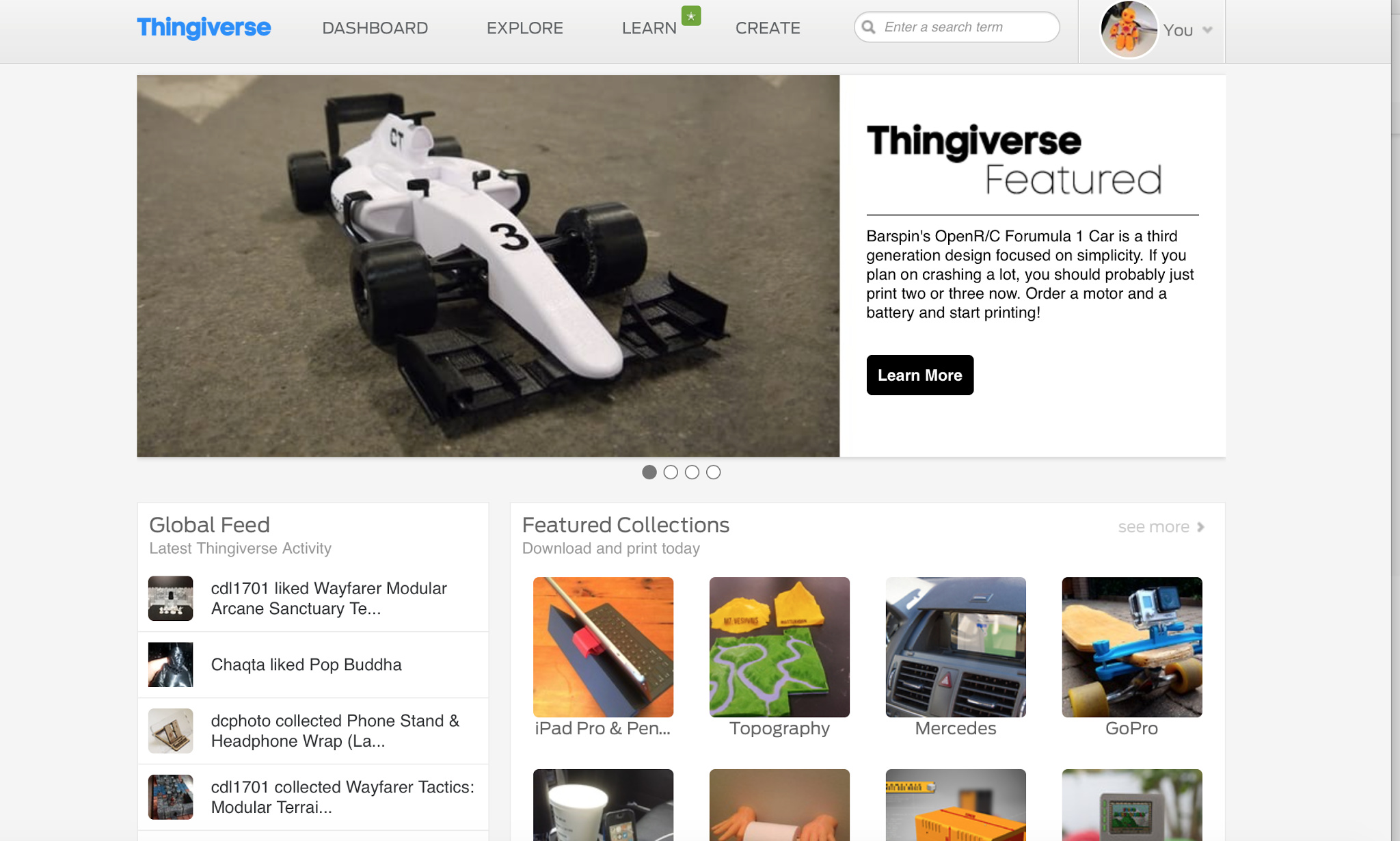 Congrats Daniel on being featured on the front page of Thingiverse.
