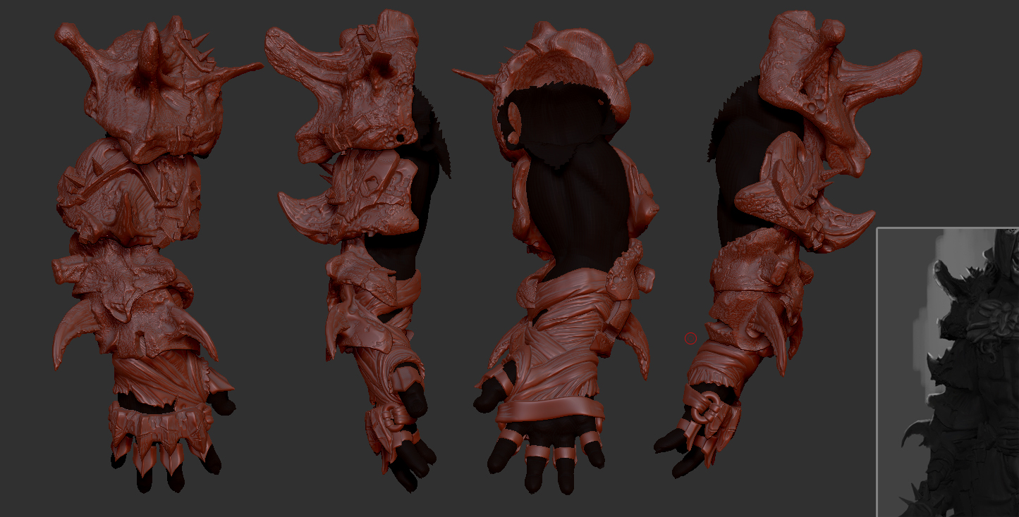 Continue to work, armor on the arm of Orc made out of bones and metal