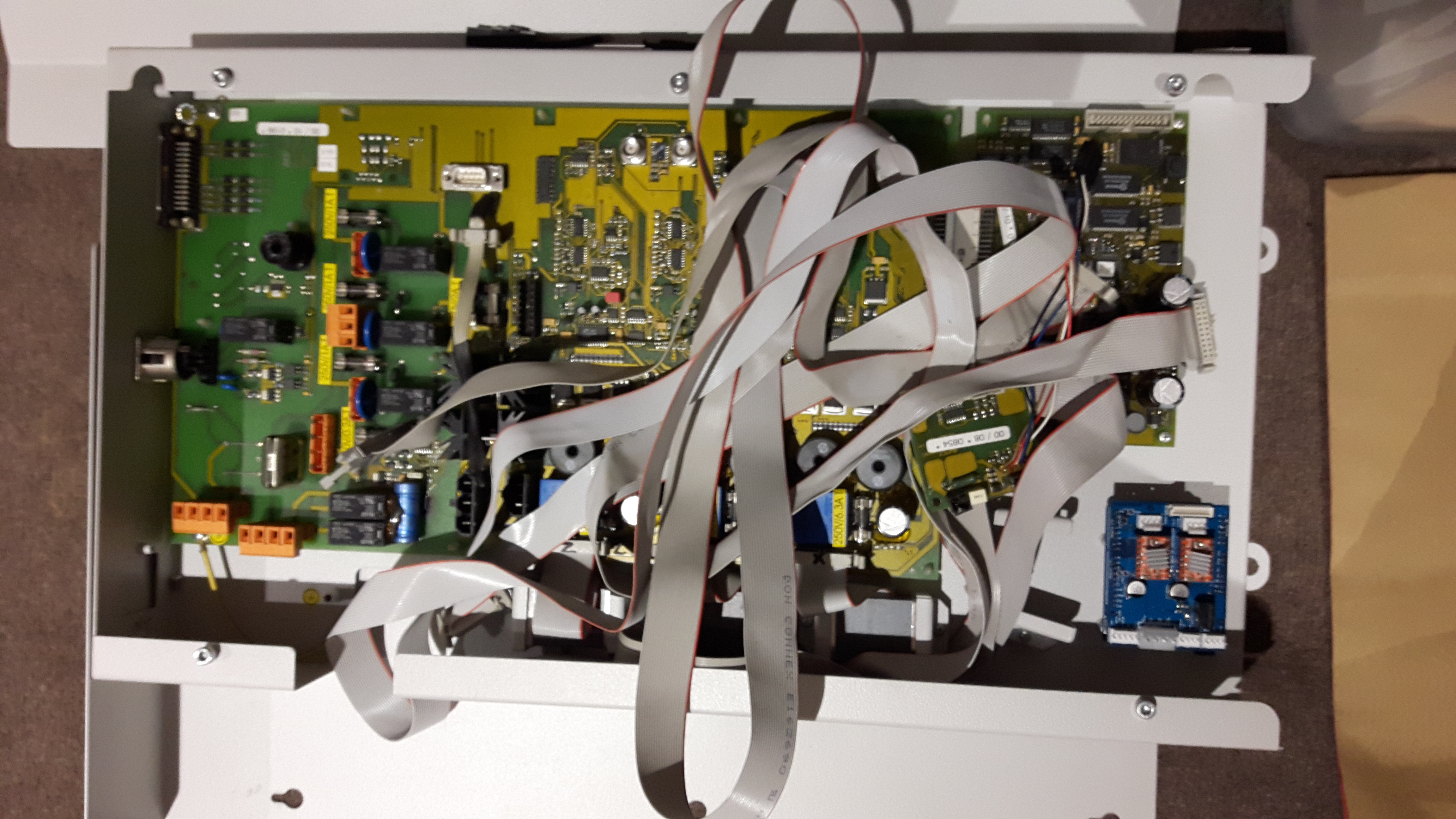 Converted this massive obsolete 18 year old Trotec laser. Amazing how technology has changed in 18 years…see the photo of the old motherboard and the new controller. I am amazed that the laser tube still works after all that time. Got it from wBay for $250 plus another $250 for postage. It’s massively heavy. Hopefully this convinces some more people for my Gerbil controller @ kickstarter.